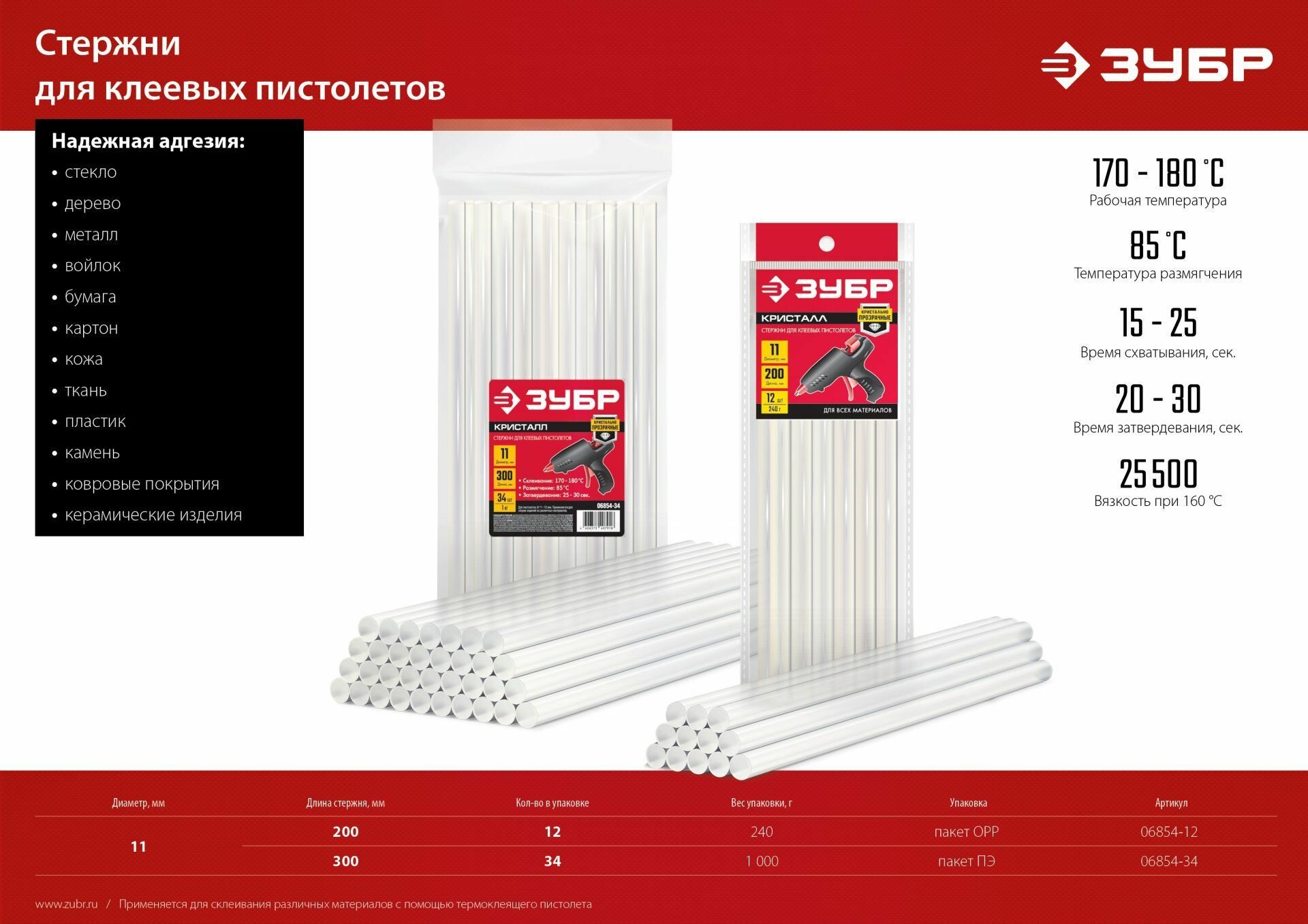 Клеевые стержни ЗУБР 06854-34