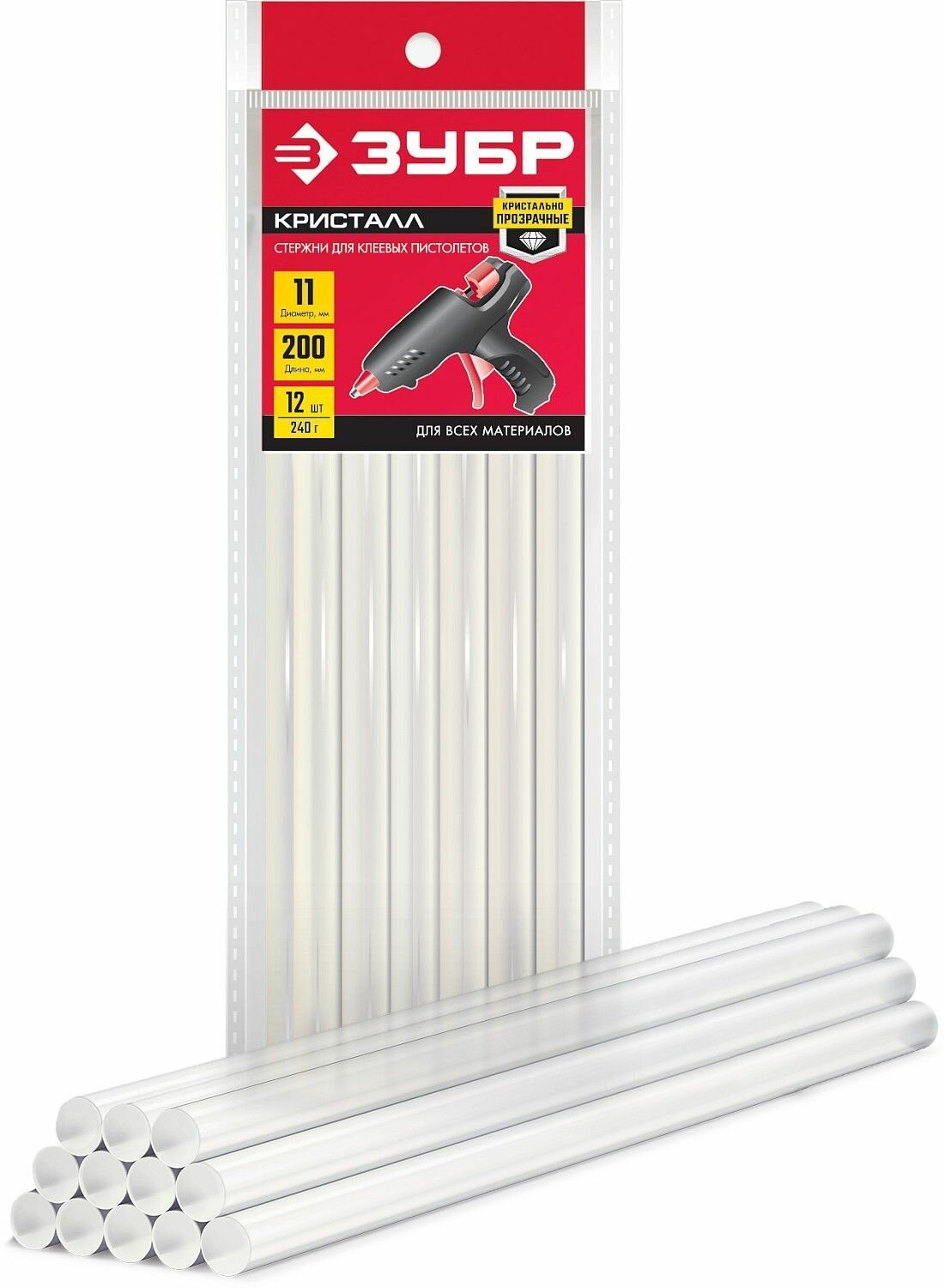 Купить Прозрачные клеевые стержни ЗУБР 12 шт, 11х200 мм 06854-12