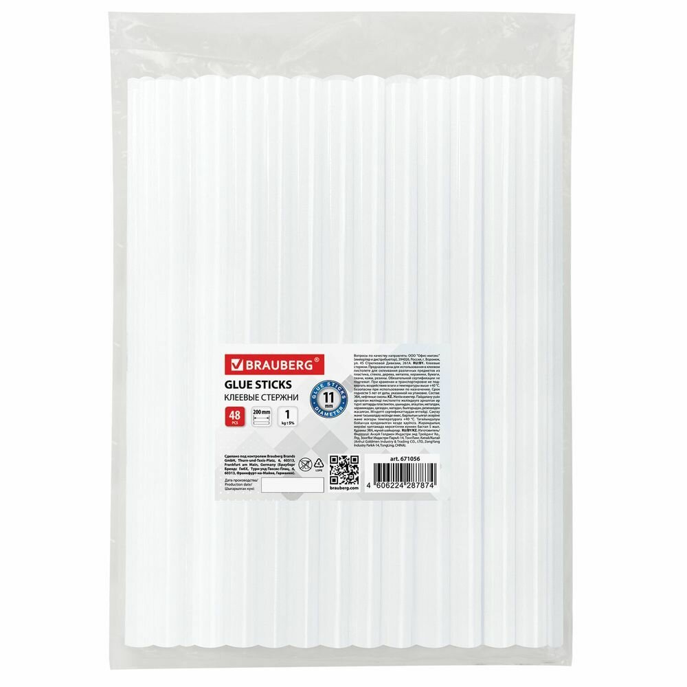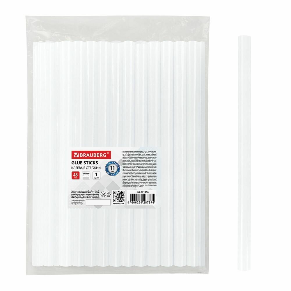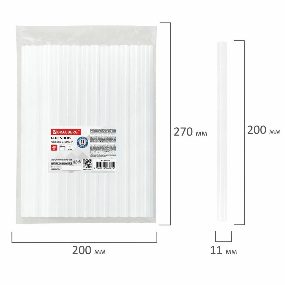 Купить Клеевые стержни, диаметр 11 мм, длина 200 мм, прозрачные, 1 кг (48 штук) BRAUBERG