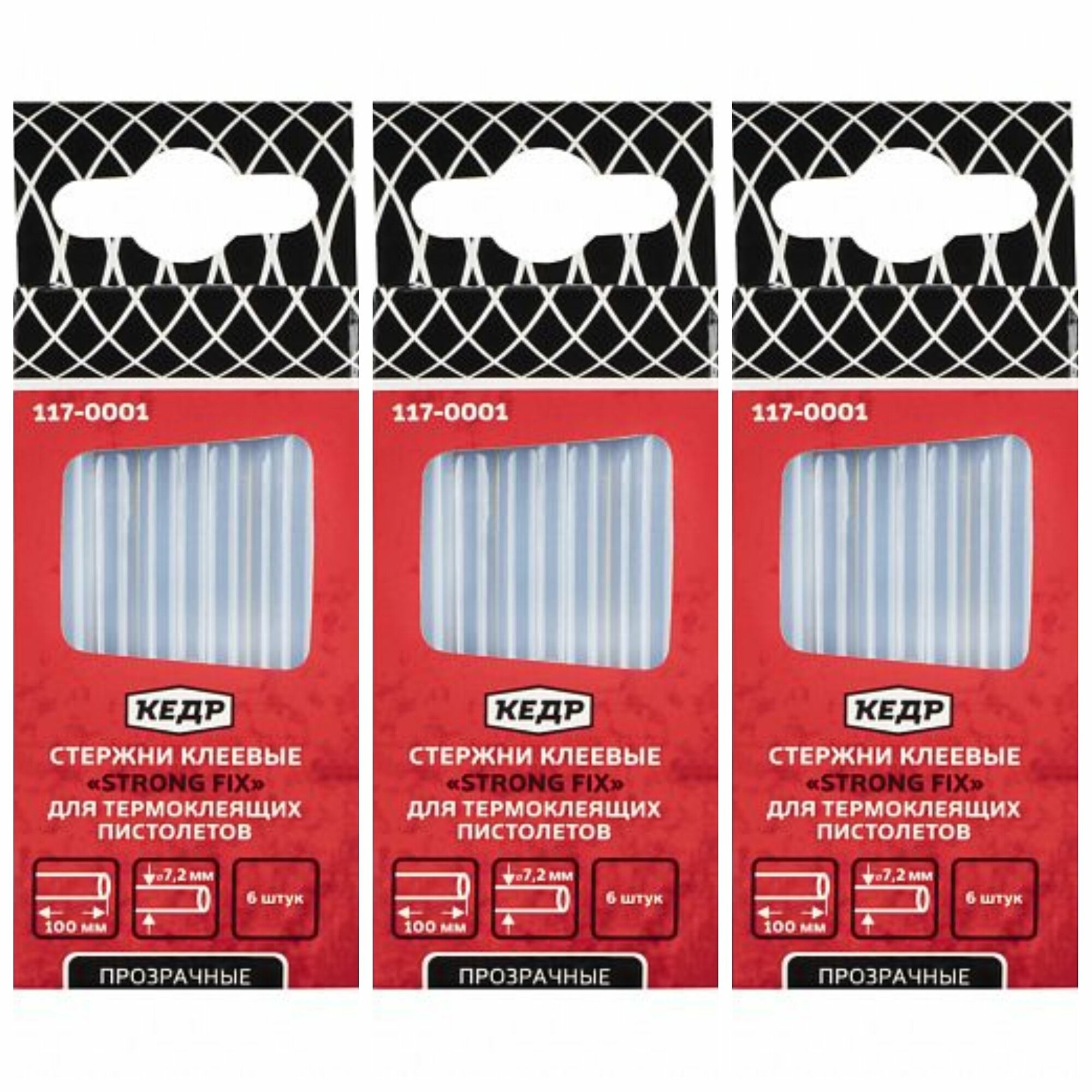 Стержни клеевые 7,2х100 мм 18 штук (3 упак по 6 шт) для термоклеящих пистолетов Кедр интересное: