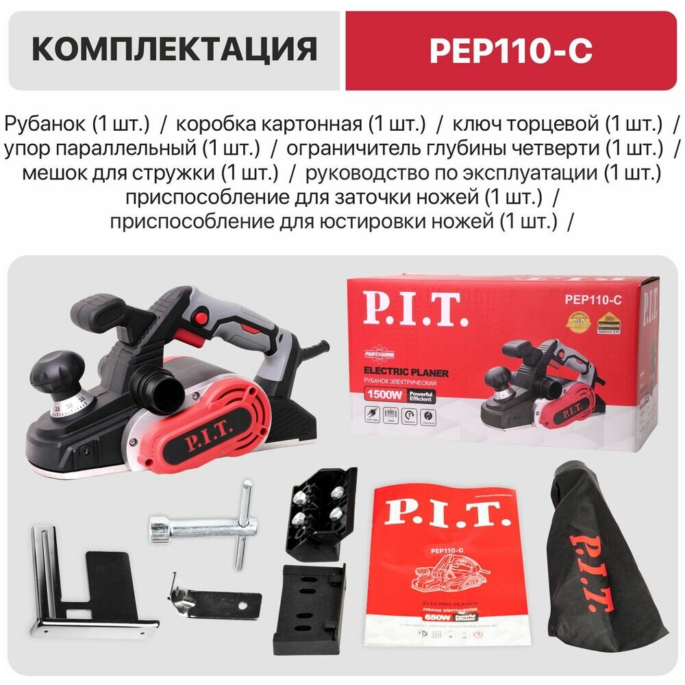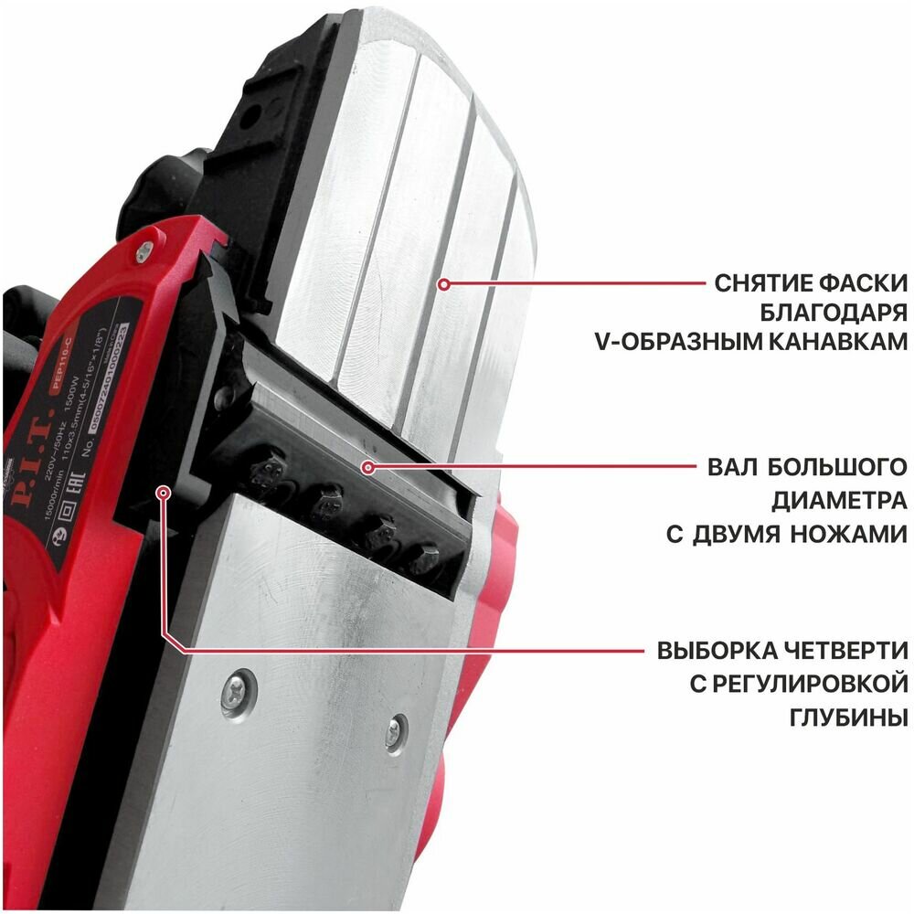 Купить Рубанок P.I.T. PEP110-C (1500Вт, 15000об/мин, 2 ножа 110мм, 0-3,5мм, четв. 15мм, 3 фаски)