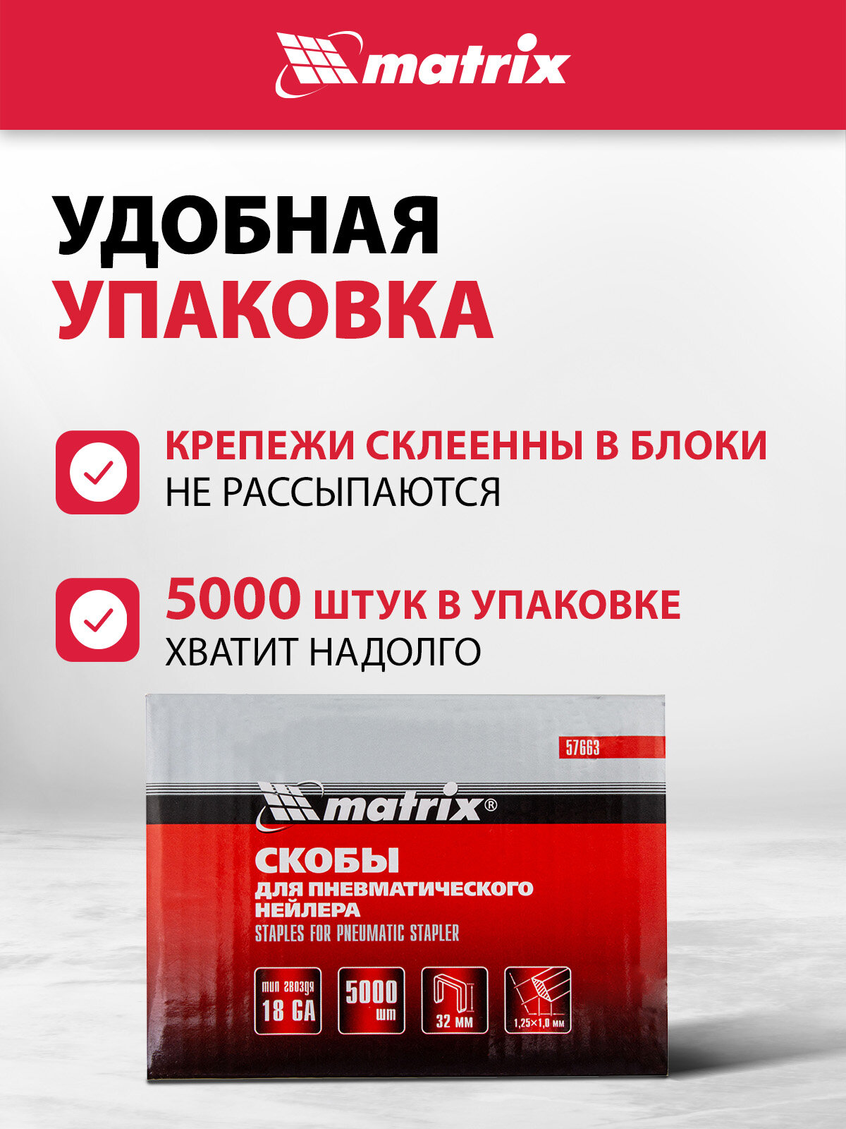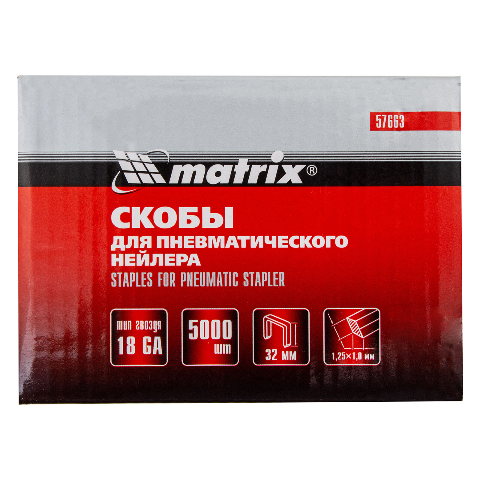 Купить Скобы Matrix 18GA для пнев. степлера 1,25х1, 0мм длина 32 мм ширина 5, 7 мм, 5000 шт 57663