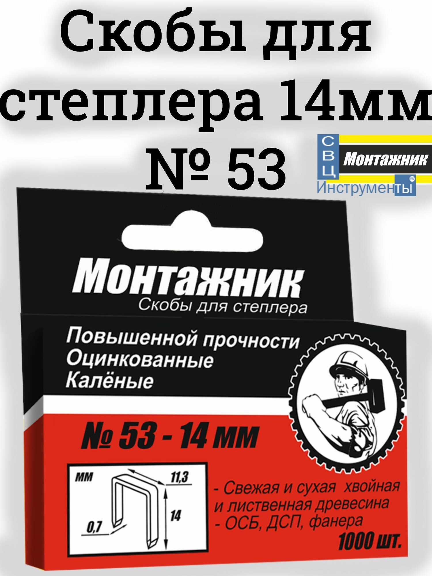 Скобы для степлера: Монтажник 14мм, тип 53, каленые 1000шт (655005) интересное: