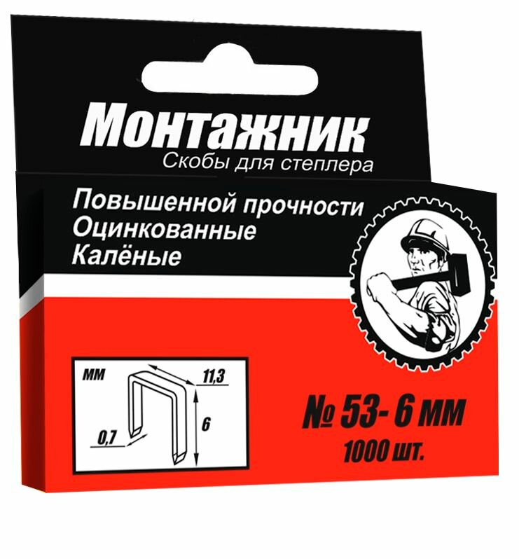 Скобы для степлера: Монтажник 6мм, тип 53, каленые 1000шт (655001) интересное: