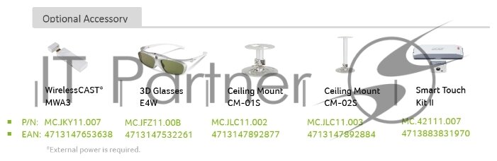 Acer S1386WH (T421D) [MR.JQU11.001] {DLP 3D, WXGA, 3600lm, 20000/1, HDMI, short throw 0.5, 2.7kg}