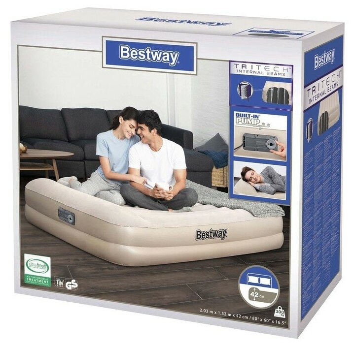 Двуспальная надувная кровать Bestway 67696 Tritech Airbed + насос (203х152х42см)