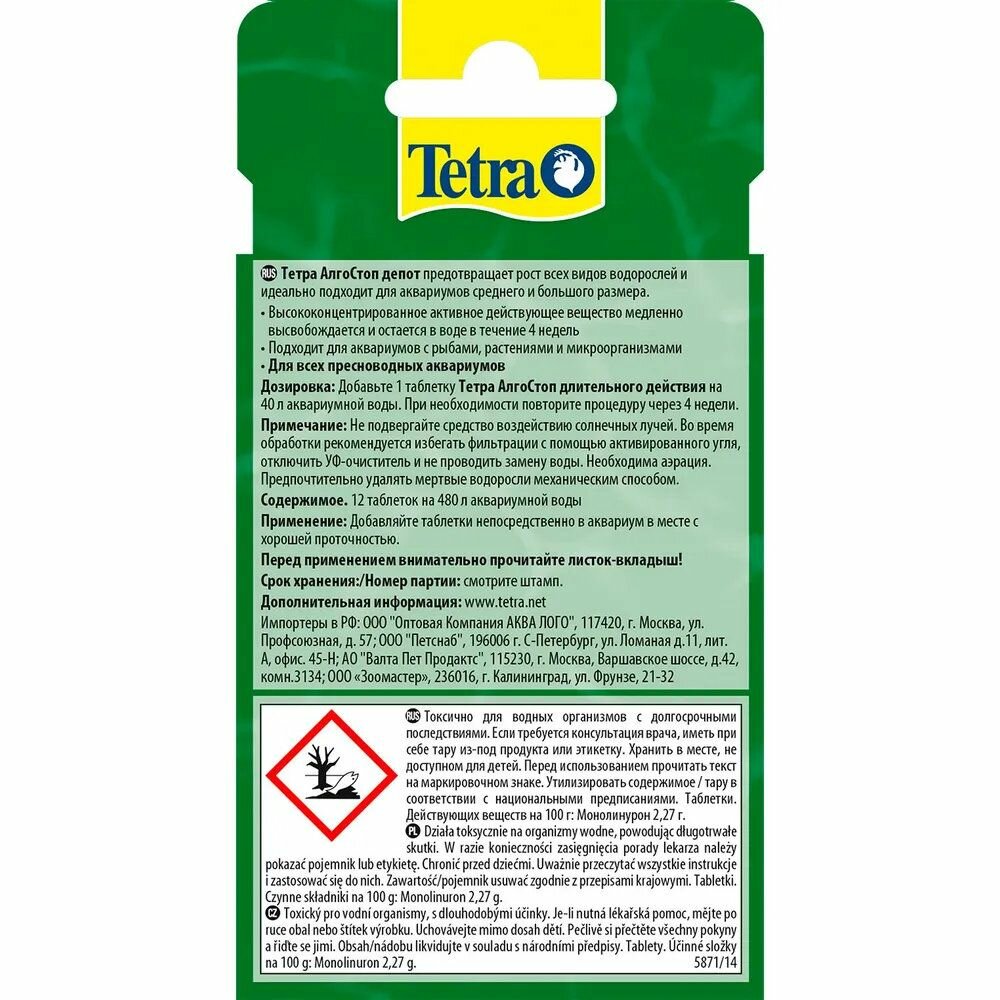 Ниже Вы можете прочитать отзывы на Tetra AlgoStop Depot средство против водорослей длительного действия 12 таблеток на 480 л., ознакомится с подробными характеристиками, посмотреть интересные обзоры и фотографии на Tetra AlgoStop Depot средство против водорослей длительного действия 12 таблеток на 480 л..