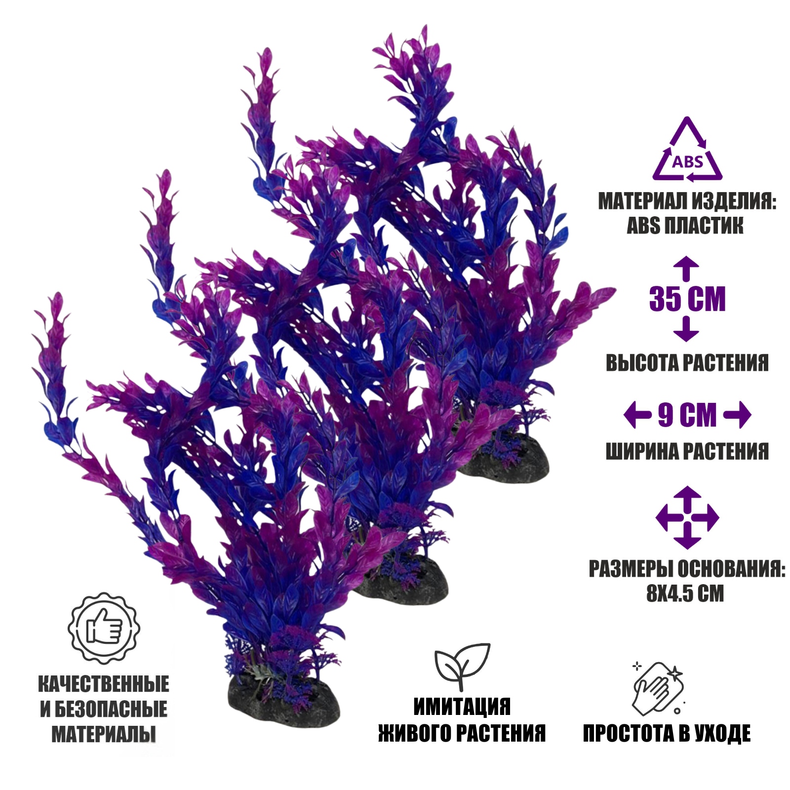 Растение искусственное, декор для аквариума, Людвигия фиолетовая, 3 шт интересное: