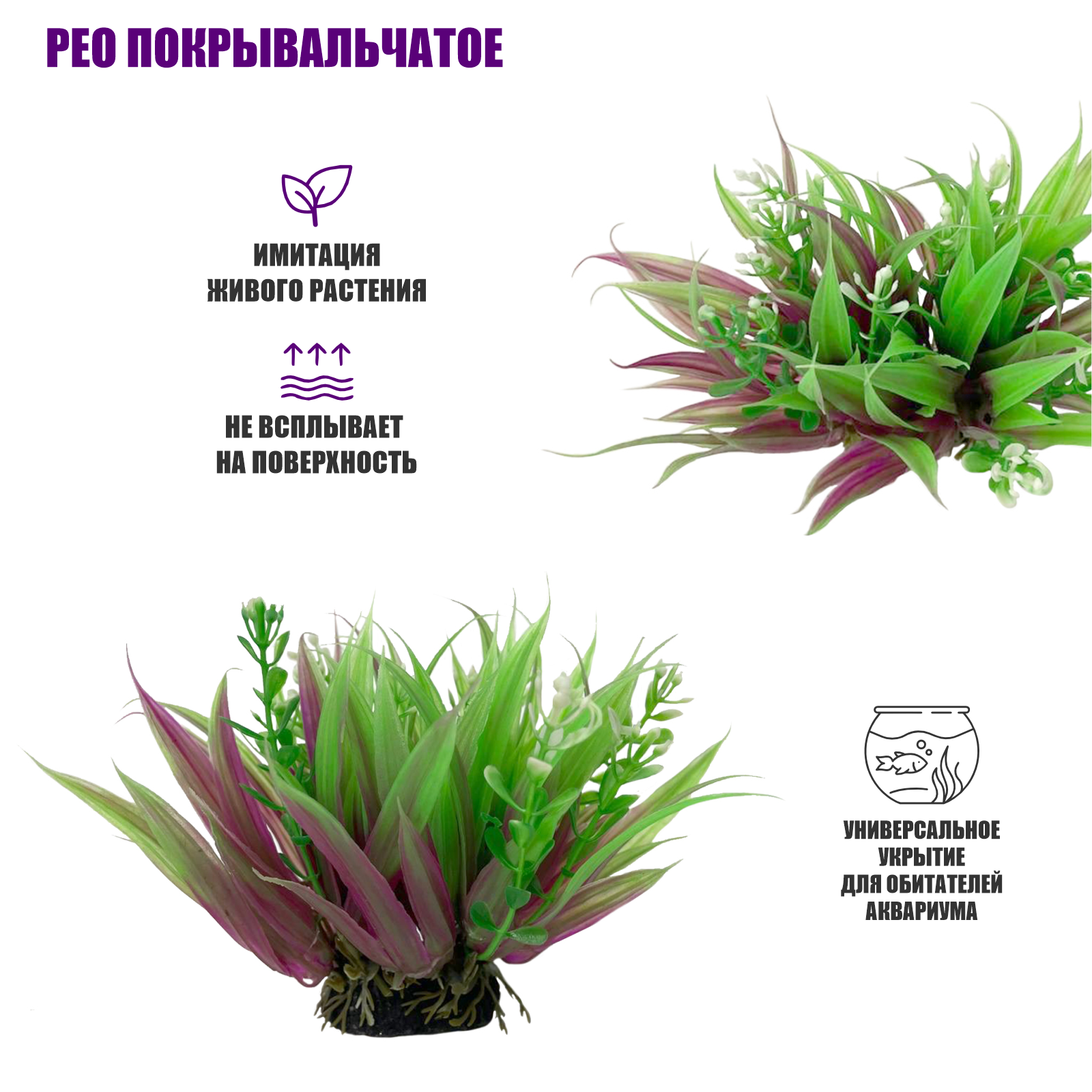 Декор для аквариума, растения искусственные, Амбулия розово-зеленая, Рео покрывальчатое и Альтернантера розовая интересное: