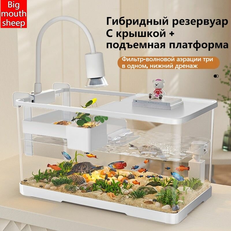 Аквариум для черепахи красноухой, 55*30*29.4cm, С аквариумным светильником и фильтром интересное: