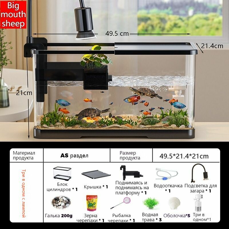 Аквариум для черепахи красноухой, 49.5*21.4*21cm, С аквариумным светильником и фильтром интересное: