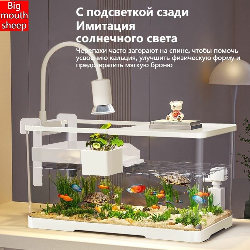 Аквариум для черепахи красноухой, 38.8*21.5*21.2cm, С аквариумным светильником и фильтром интересное:
