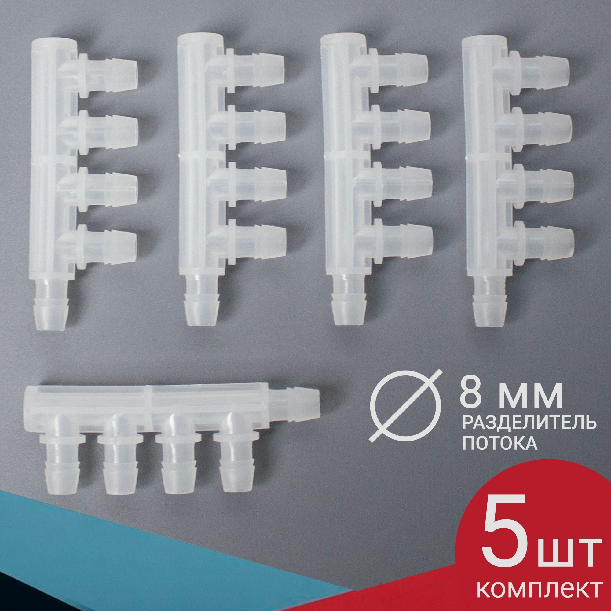 Купить Разделители потока, 4 канала, штуцеры 8 мм. Для аквариума, компрессора и фильтра, шланг диаметром 8/10 мм. (для воздуха и воды)