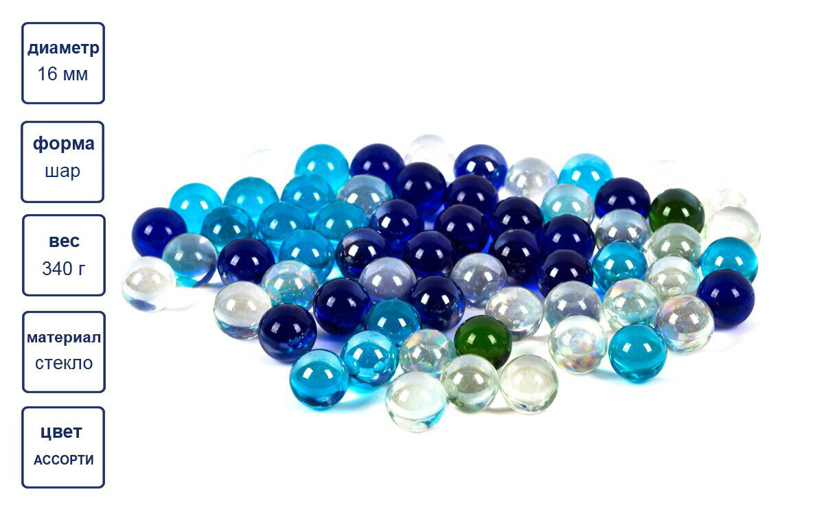 "Blumentag" GLM-01/16 марблс камни стеклянные d. 16 мм 340 г №05 ассорти интересное: