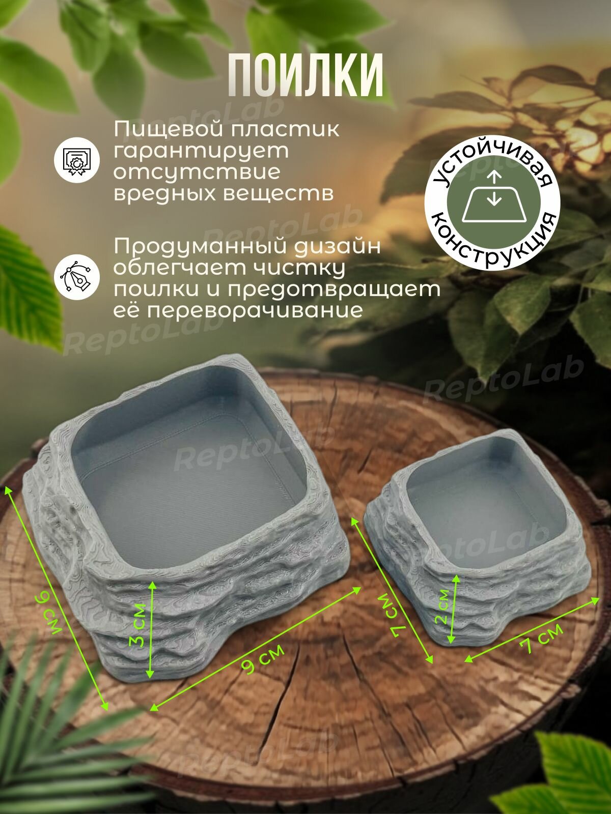 Купить Набор для рептилий: влажная камера, укрытие, поилки для гекконов и эублефаров. Цвет : Серый.