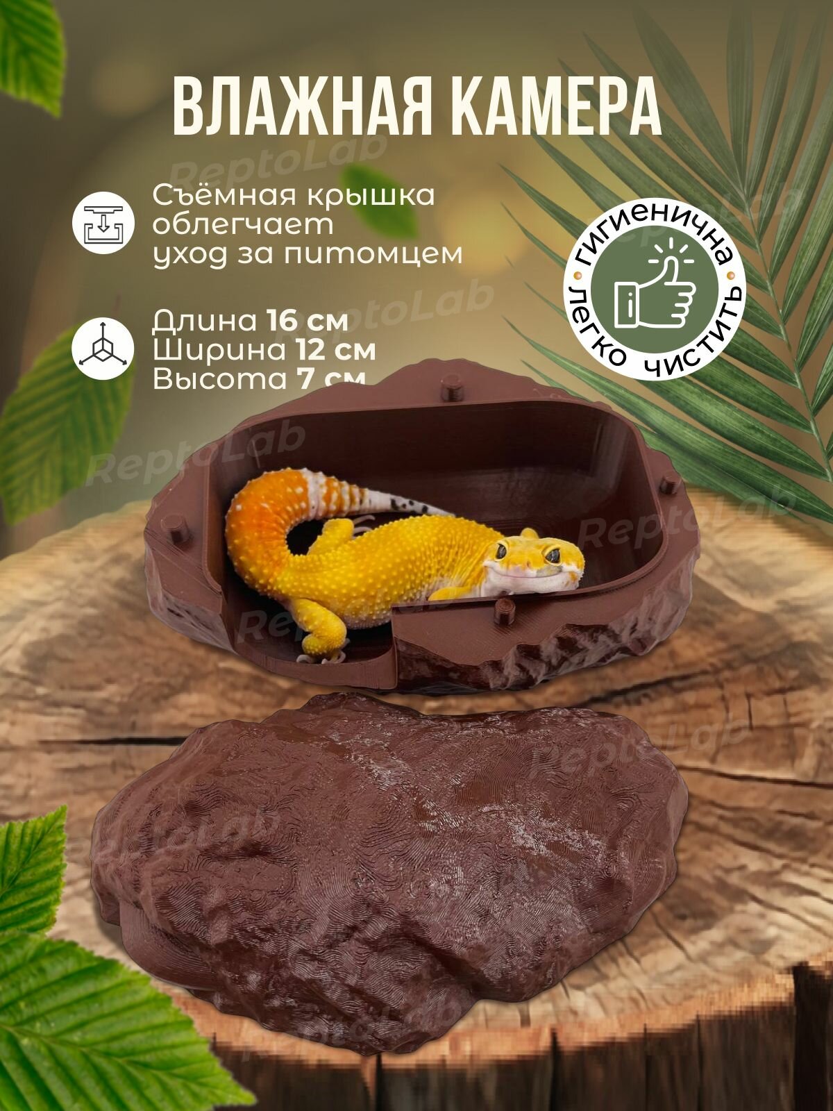 Купить Набор для рептилий: влажная камера, укрытие, поилки для гекконов и эублефаров. Цвет : Коричневый.