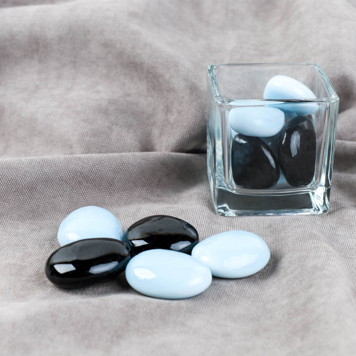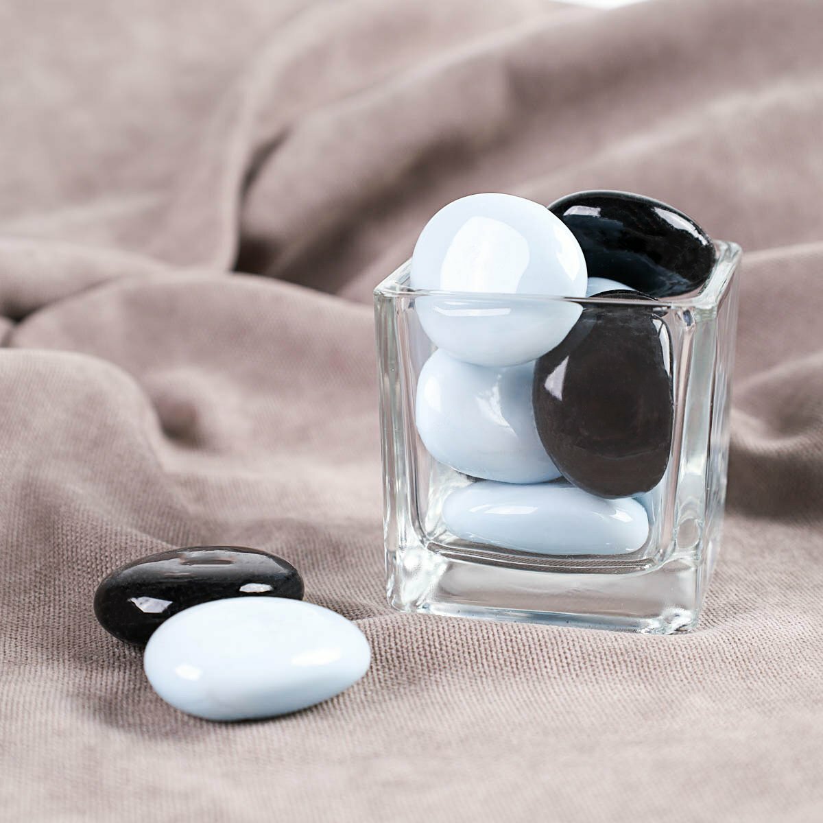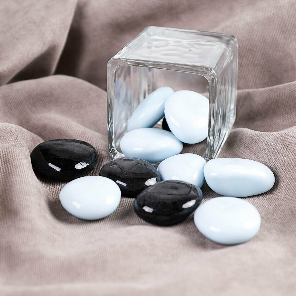 Купить Декоративные камни 250 грамм "Черно-белые", стекло, для украшения цветочного горшка и аквариума