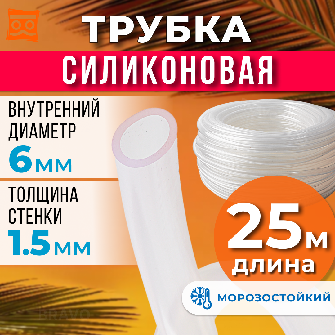 Купить Шланг силикон+пвх 6 мм (25 метров), прозрачный шланг пищевой для аквариумов, кофемашин, самогонных аппаратов