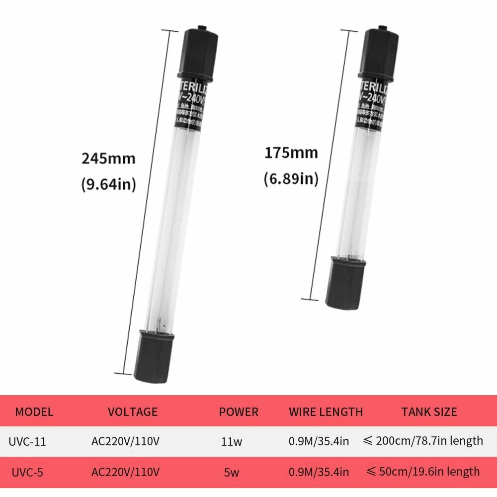 Купить УФ-лампа для аквариумов 5Вт/11Вт с мощной стерилизацией, быстро очищает, для аквариумов до 200 см