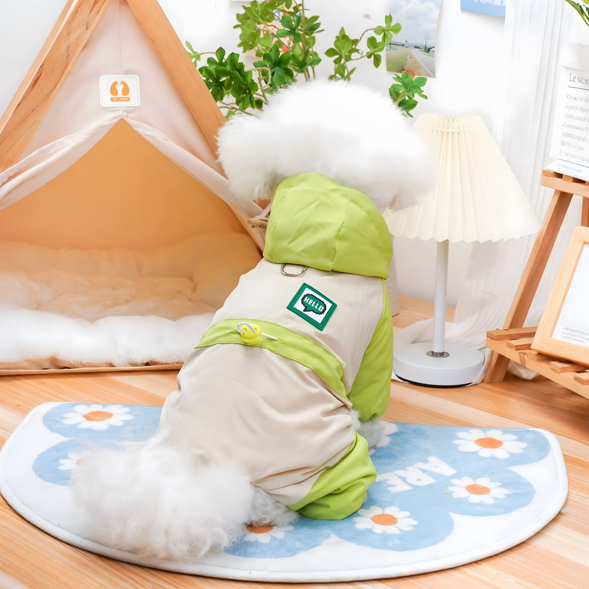 СохранитьОдежда для домашних животных "Бишон Тедди", комбинезон с капюшоном, осень-зима, XS, зеленый интересное: