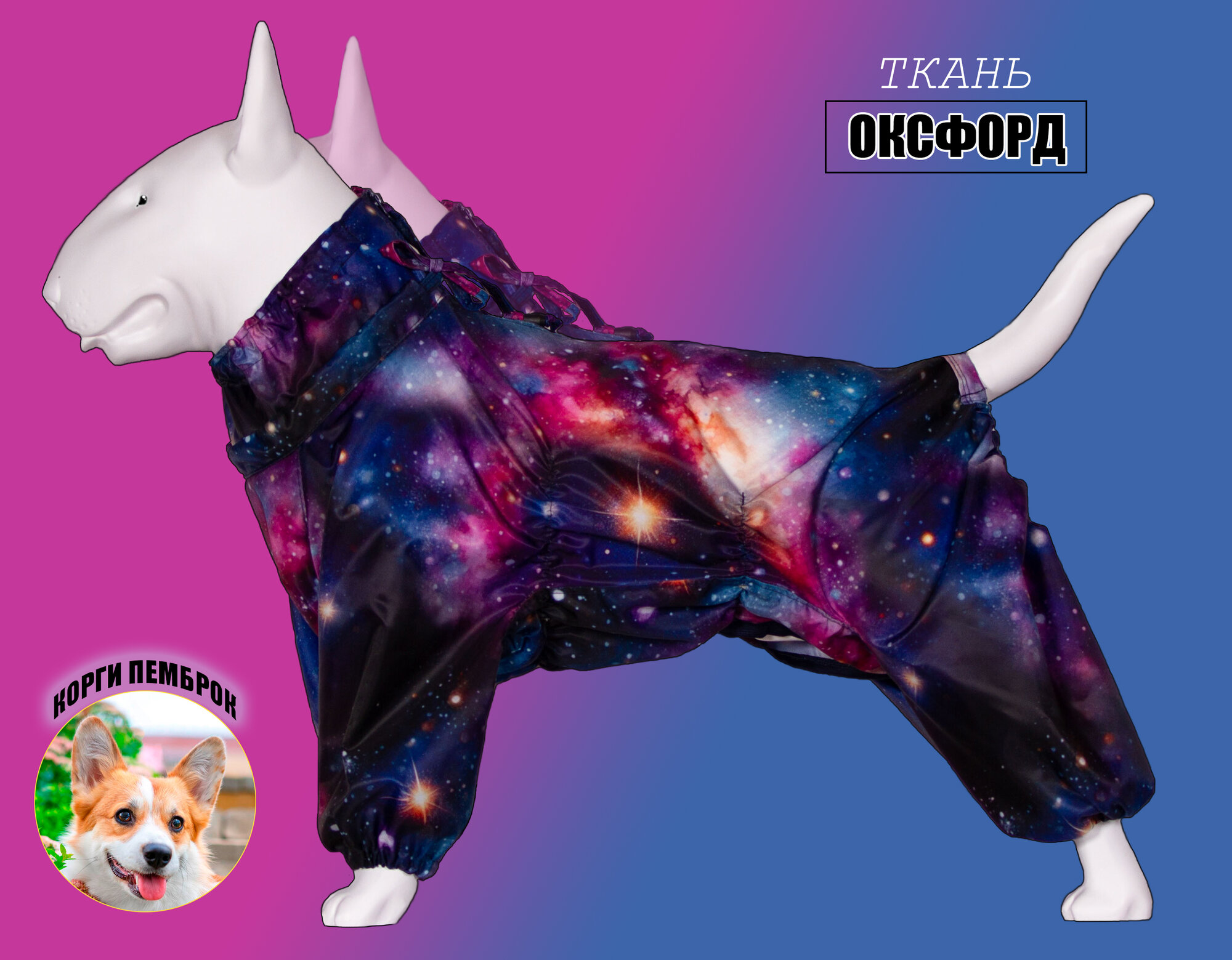 СохранитьДождевик-комбинезон для ВЕЛЬШ-КОРГИ ПЕМБРОКА суки, повышенной прочности, дизайнерский принт, цвет галактика интересное: