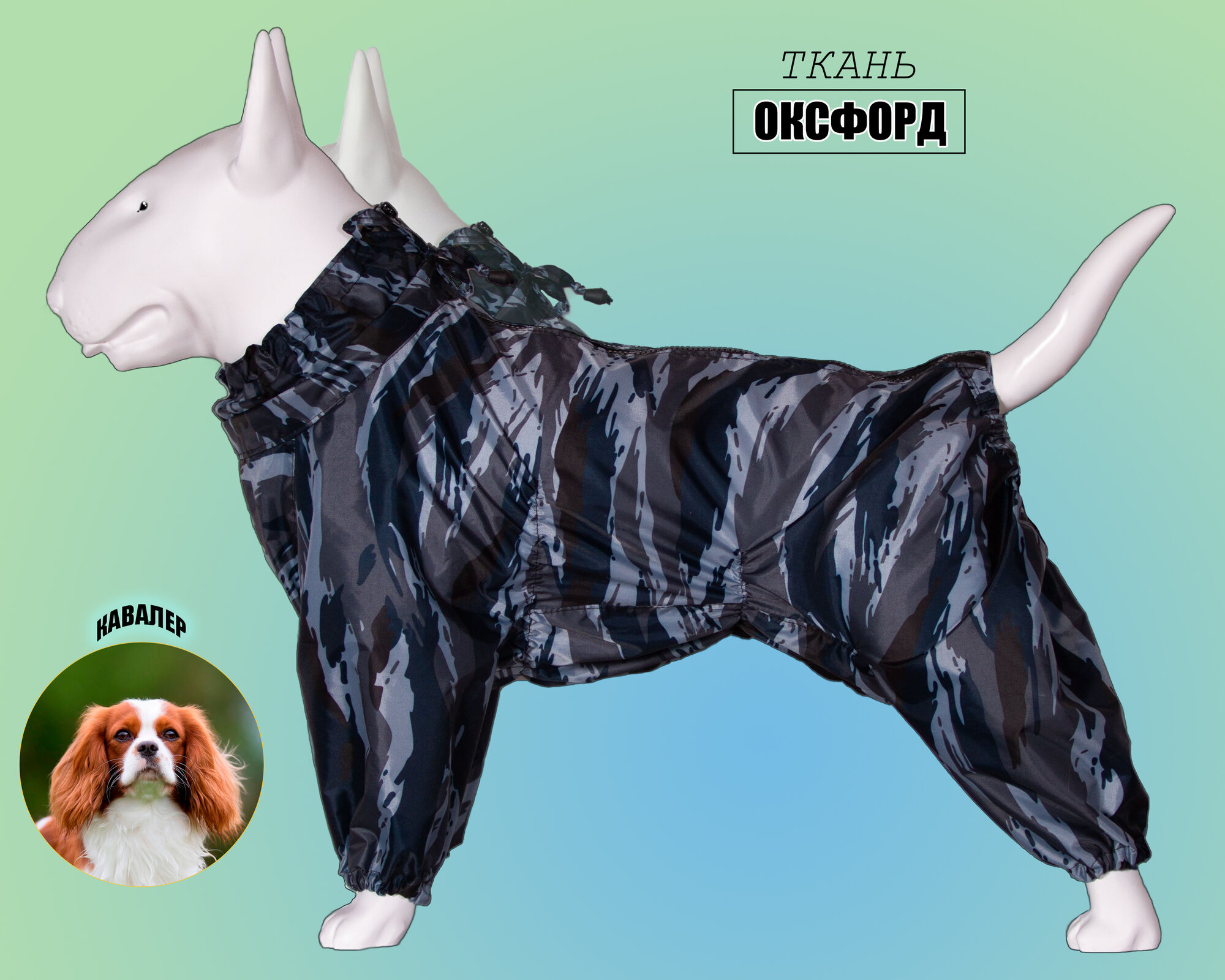 Комбинезон-дождевик для КАВАЛЕР-КИНГ-ЧАРЛЬЗА-СПАНИЕЛЯ суки, повышенной прочности, цвет синий камуфляж