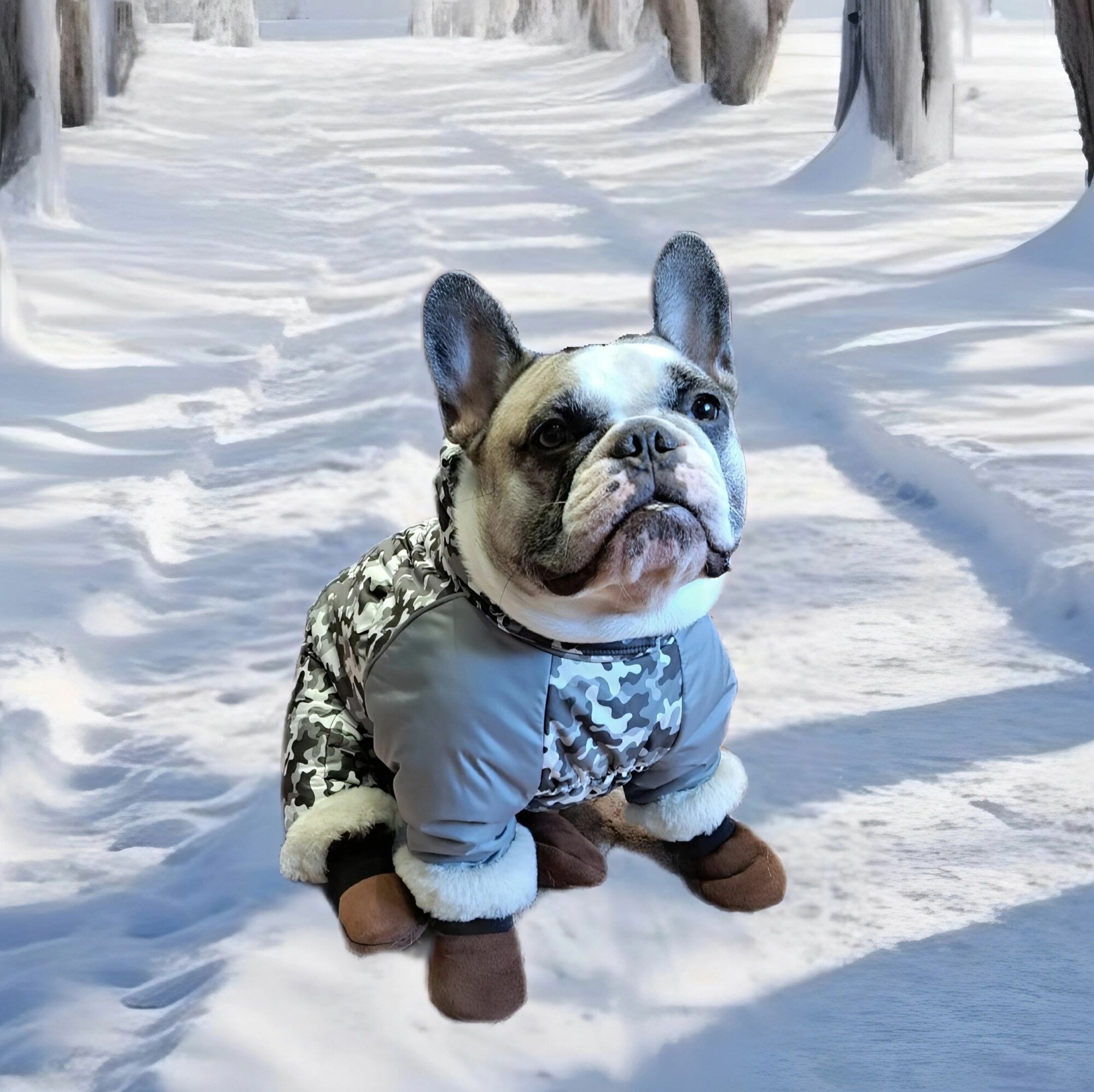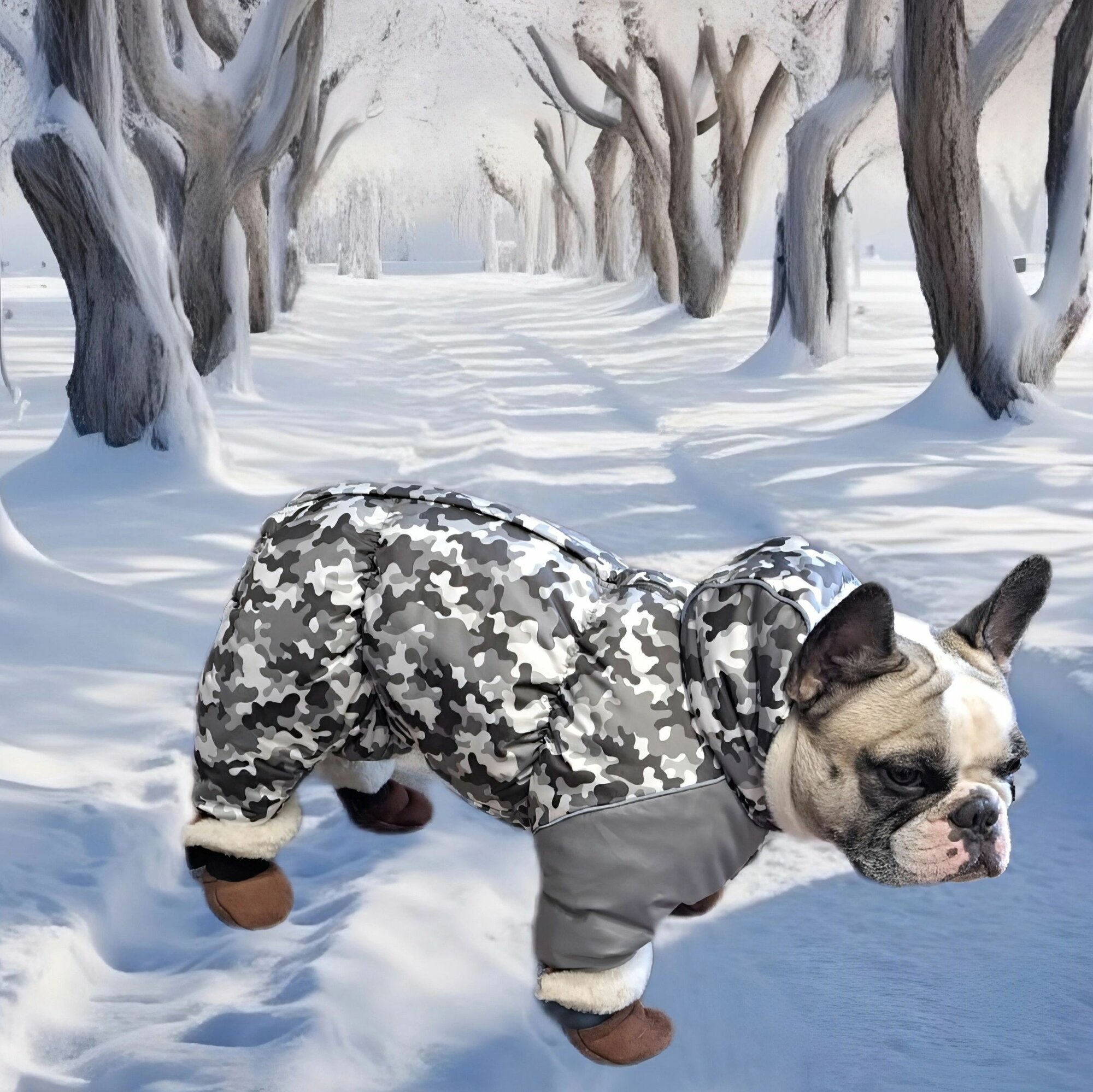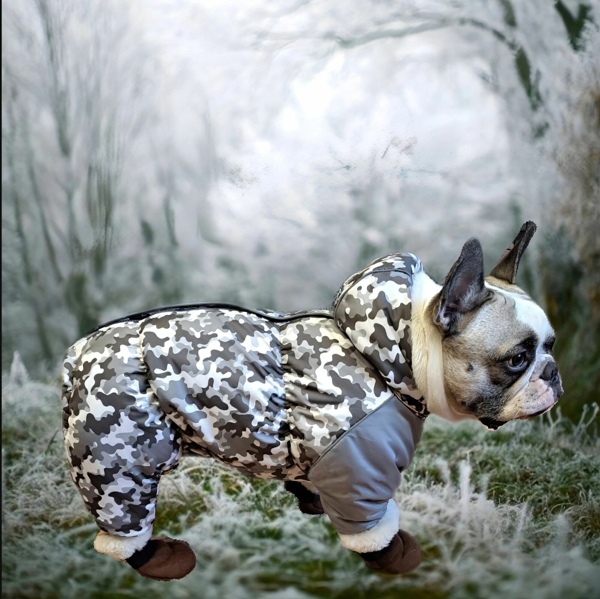 Купить Комбинезон зимний "ZOO" для французских бульдогов и пород схожей комплекции, серый камуфляж, ФР-1