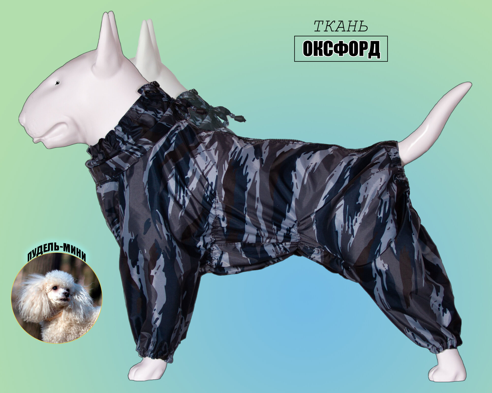 Дождевик-комбинезон для пуделя миниатюрного (карликового) суки, повышенной прочности, цвет синий камуфляж