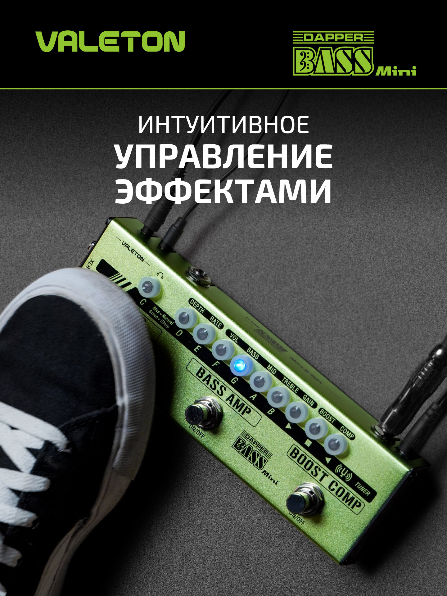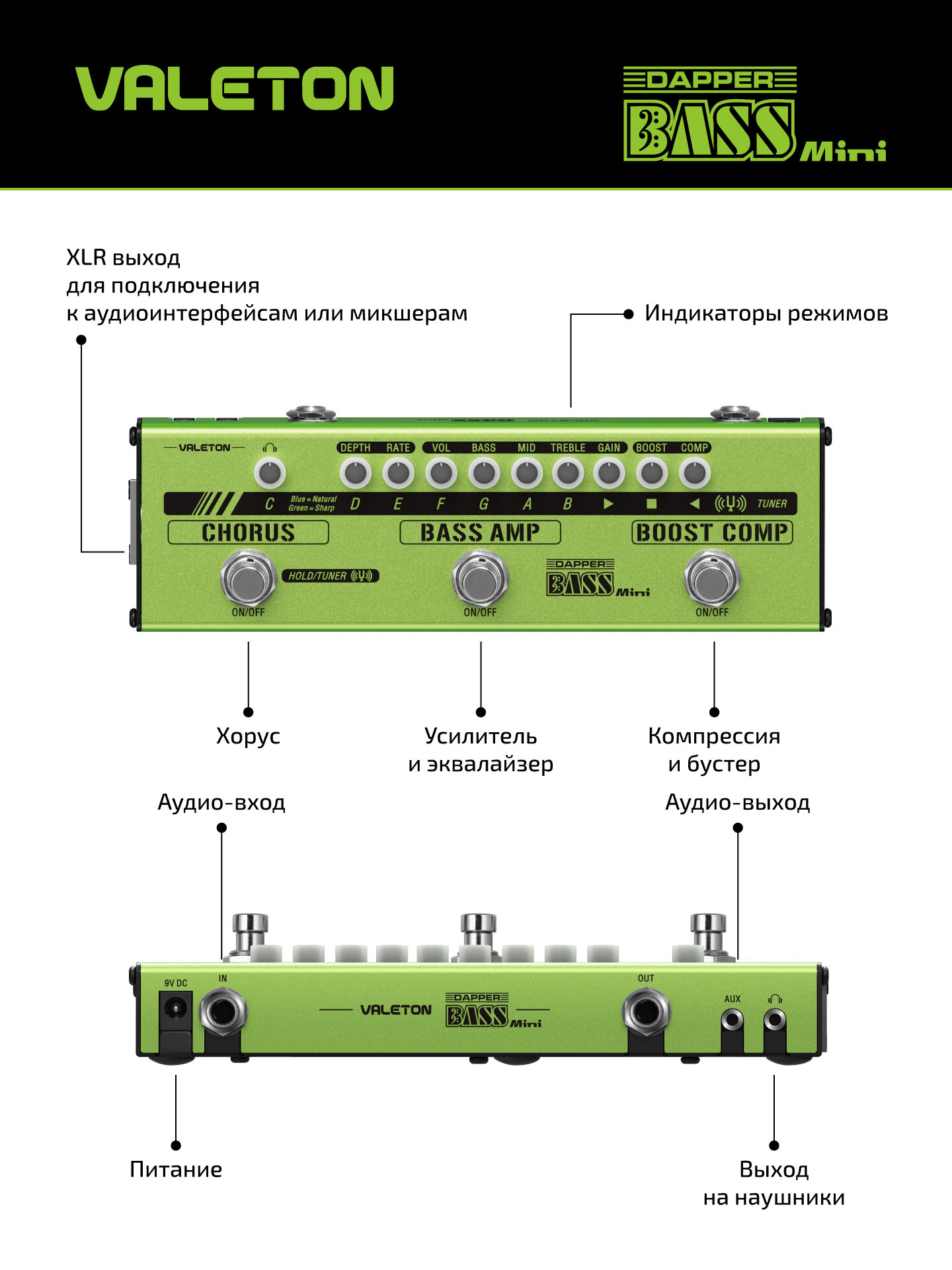 Напольная компактная басгитарная педаль Dapper Bass Mini Valeton MES-2, тюнер, chorus и compressor эффекты, выход XLR интересное: