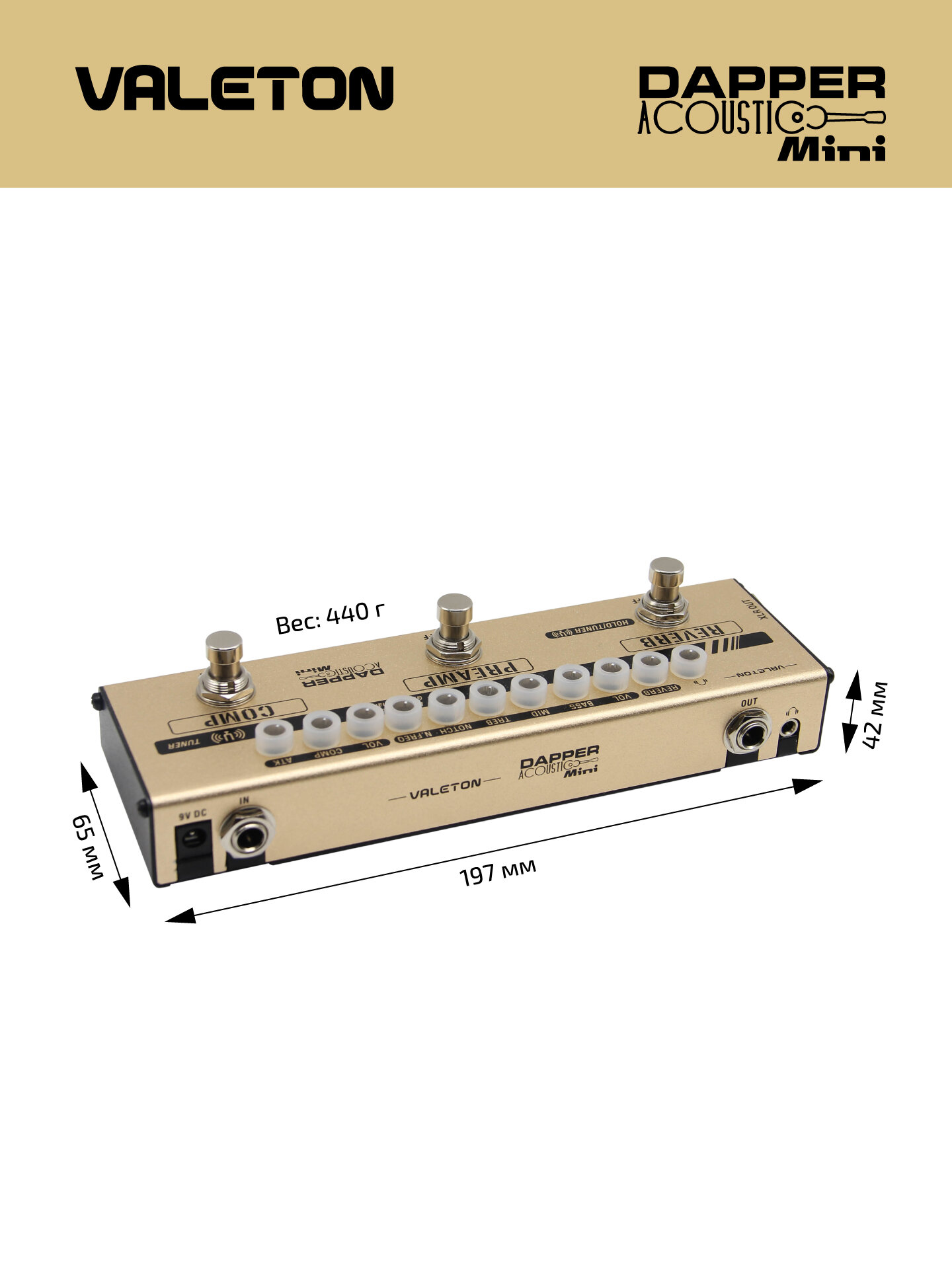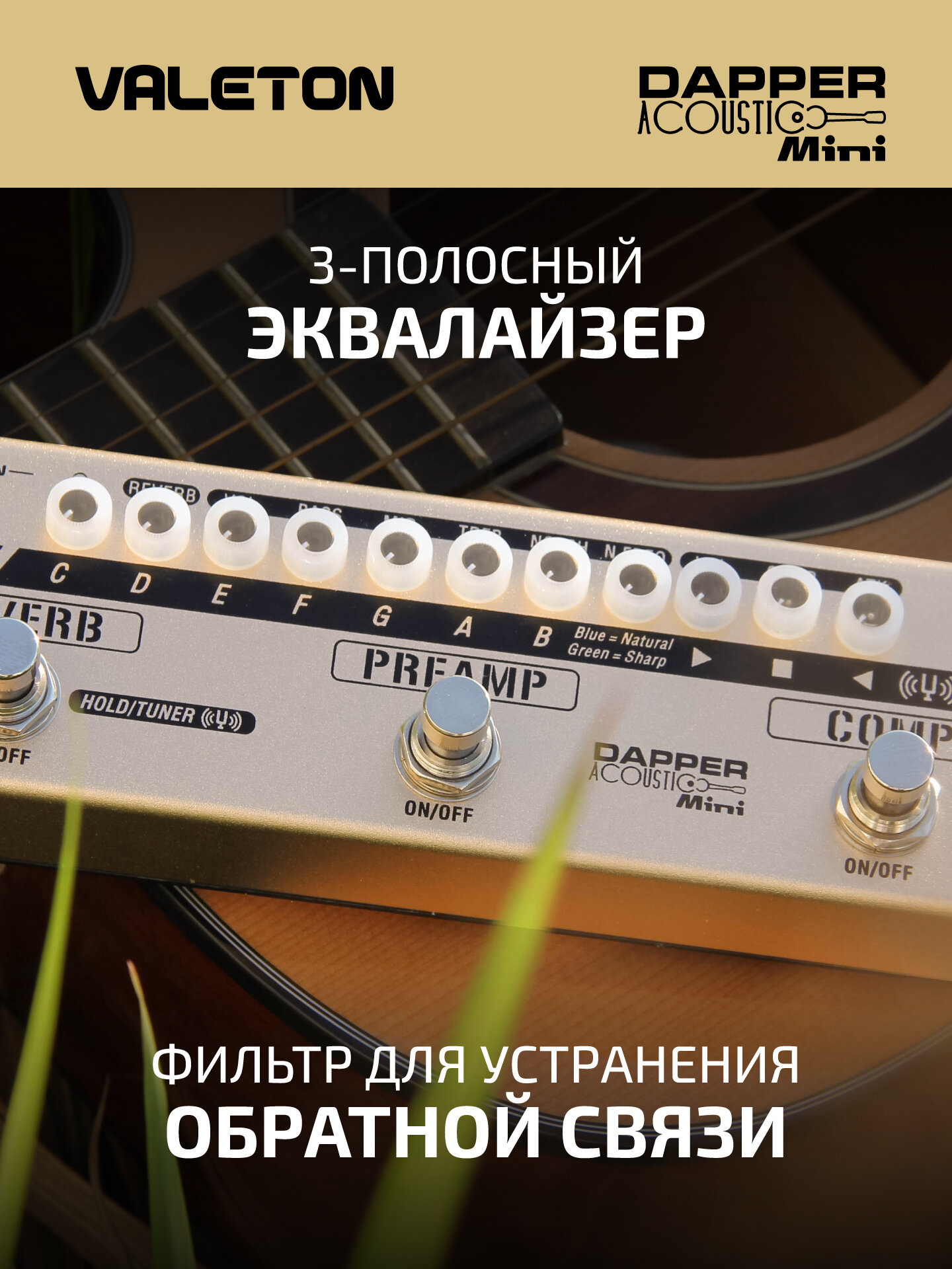 Напольная компактная гитарная педаль Dapper Acoustic Mini Valeton MES-4, для акустической гитары, тюнер интересное: