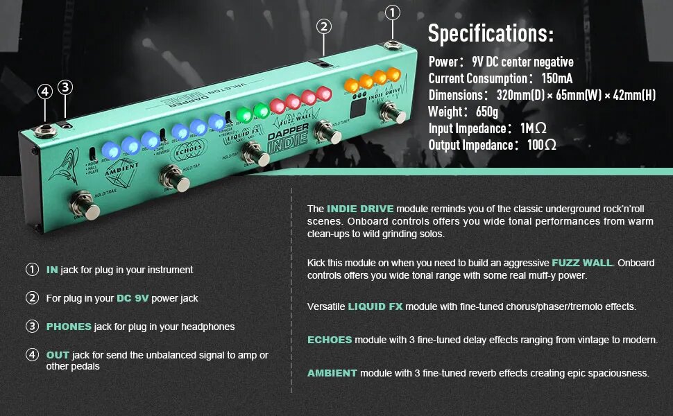 Педаль для мультиэффектов Valeton Guitar Dapper Indie Distortion Reverb Delay интересное: