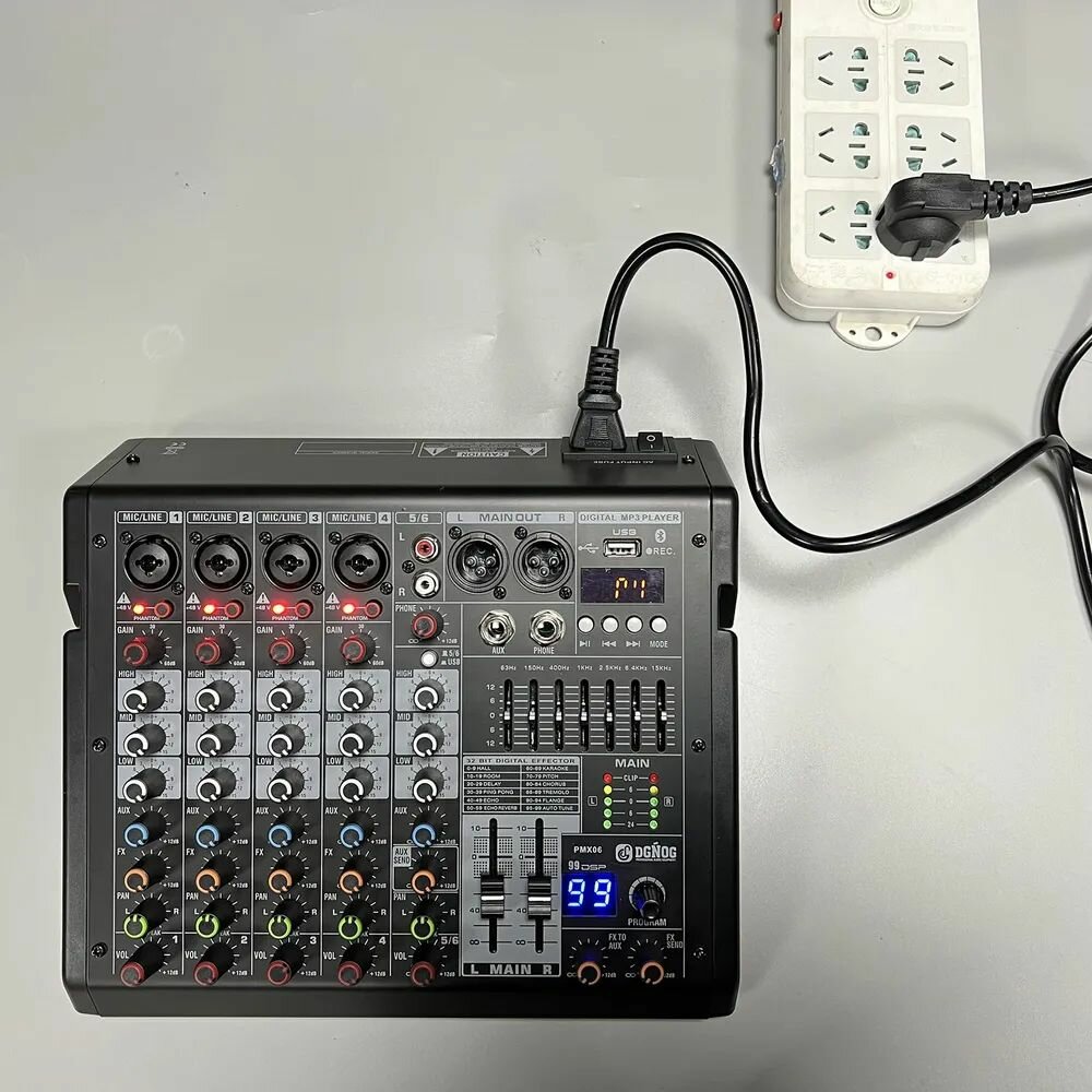 Купить 6-канальный Микшерный пульт DGNOG PMX06 цифровой MP3-вход, фантомное питание 48 В, с эффектом 99 DSP,7-полосный эквалайзер