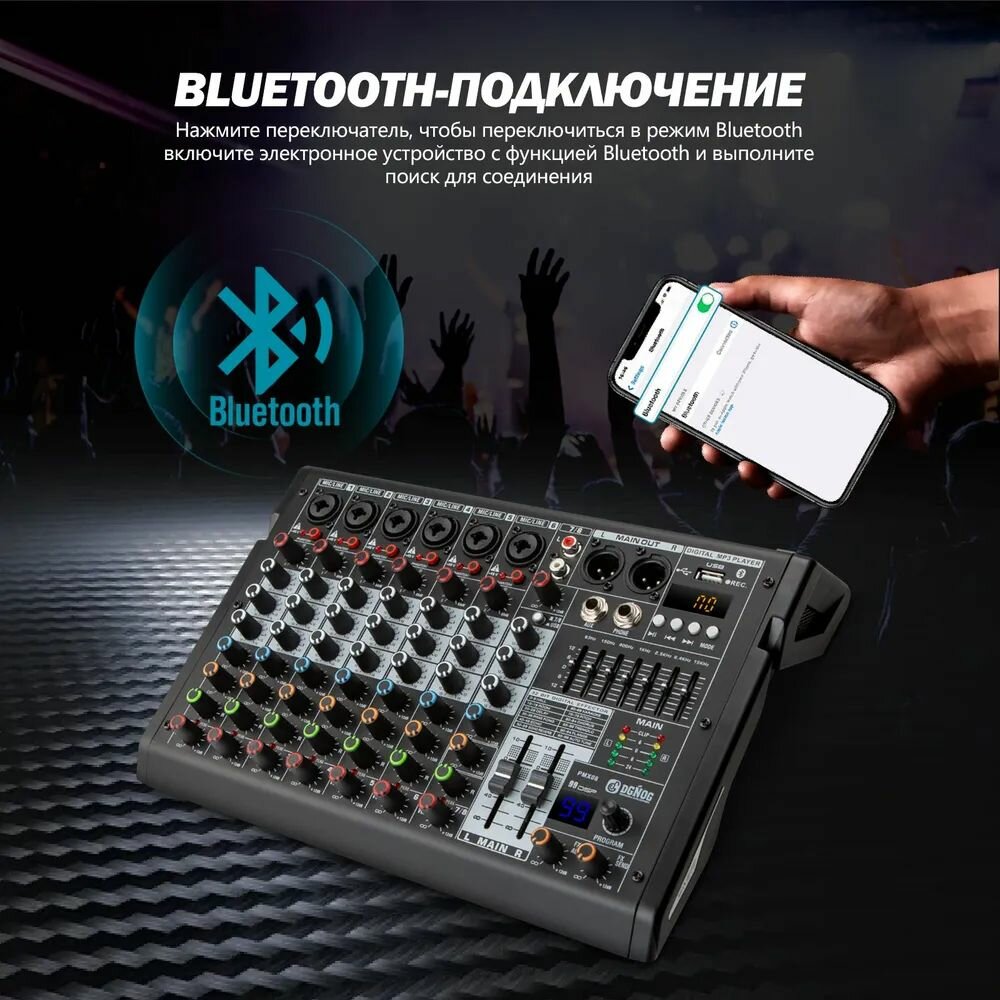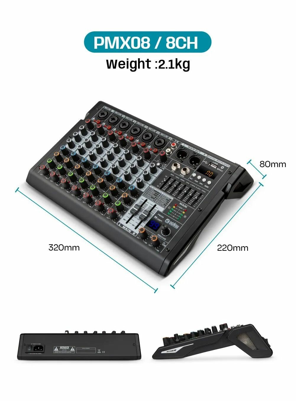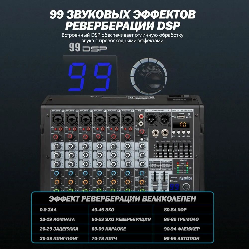 Купить 8-канальный Микшерный пульт DGNOG PMX08 цифровой MP3-вход, фантомное питание 48 В, с эффектом 99 DSP,7-полосный эквалайзер