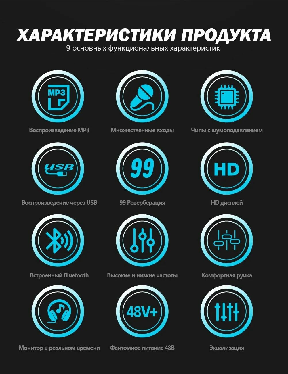 Беспроводной 4-канальный микшер караоке DGNOG R4-PRO bluetooth 2 микрофона black