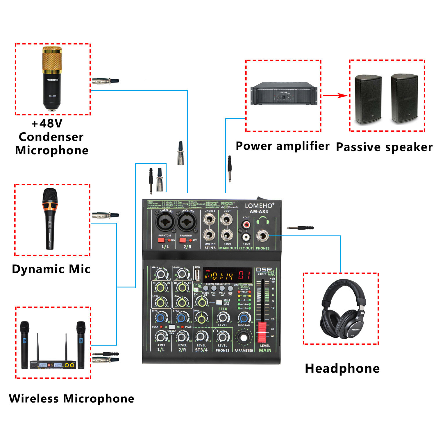 Купить 4-канальный аудиомикшерный пульт, портативный мини-микшерный пульт, Bluetooth USB 99 DSP, контроллер эффектов AM-AX3