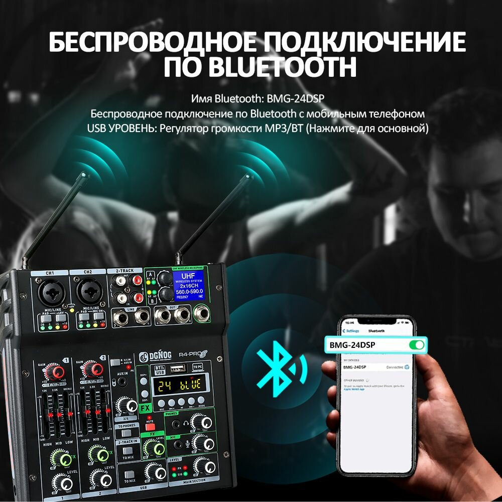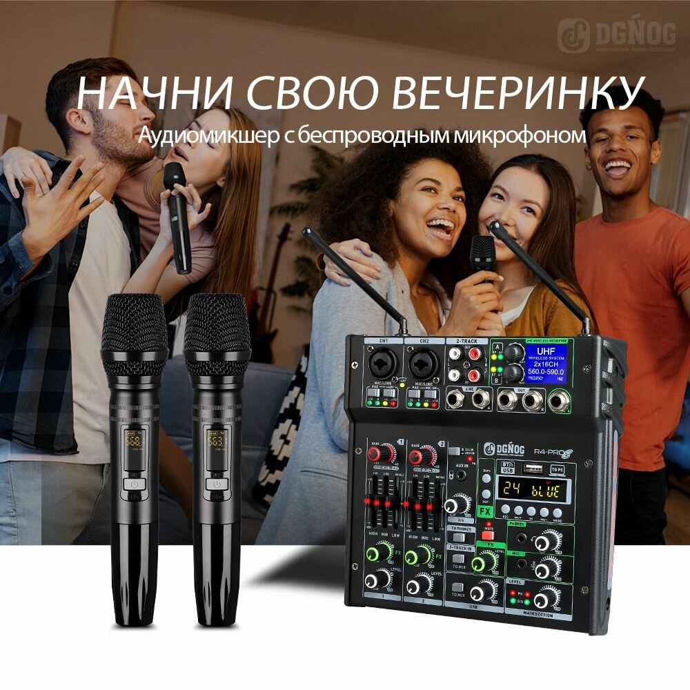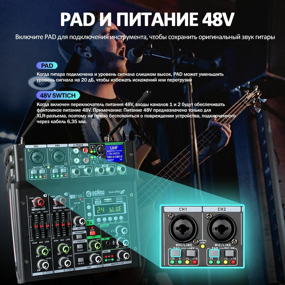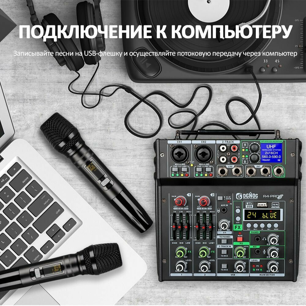 JIY Professional 4-канальный микшерный пульт Мини-USB-микшер со звуковой картой