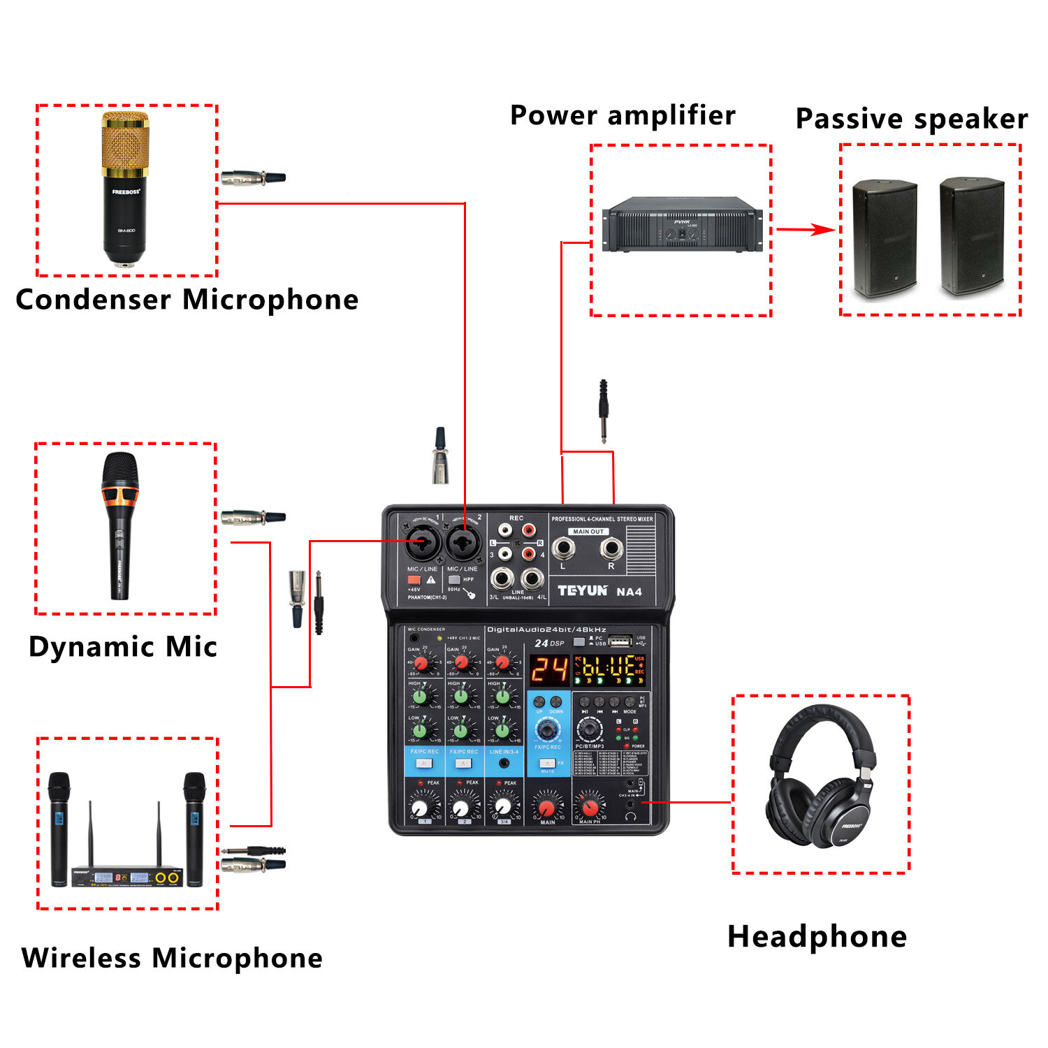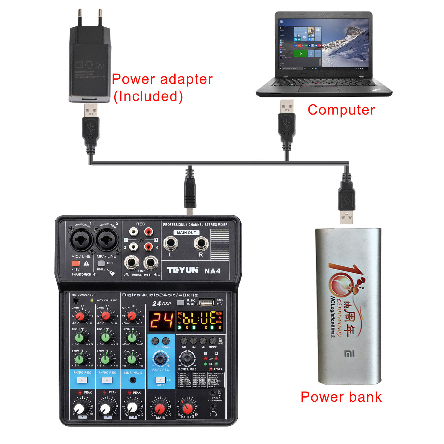 Ниже Вы можете прочитать отзывы на 4-канальный микшер 48 В Bluetooth 24-канальный DSP-эффект USB компьютерная запись живой аудиомикшер NA4, ознакомится с подробными характеристиками, посмотреть интересные обзоры и фотографии на 4-канальный микшер 48 В Bluetooth 24-канальный DSP-эффект USB компьютерная запись живой аудиомикшер NA4.
