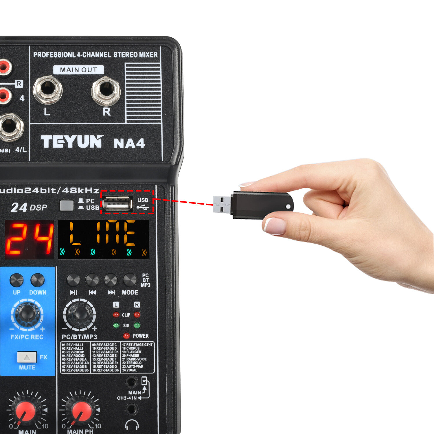 4-канальный микшер 48 В Bluetooth 24-канальный DSP-эффект USB компьютерная запись живой аудиомикшер NA4 интересное: