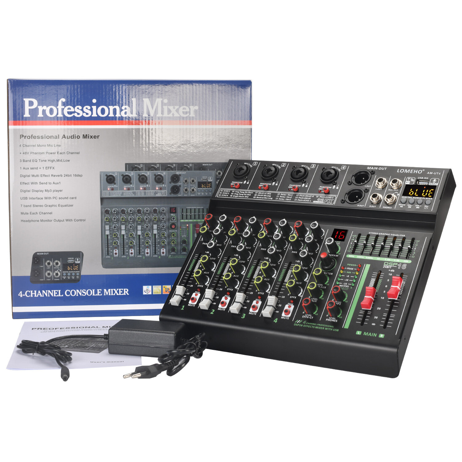 Купить 4-канальный аудиомикшер 7-полосный эквалайзер 48 В DJ 16 эффектов Bluetooth Party AM-UT4