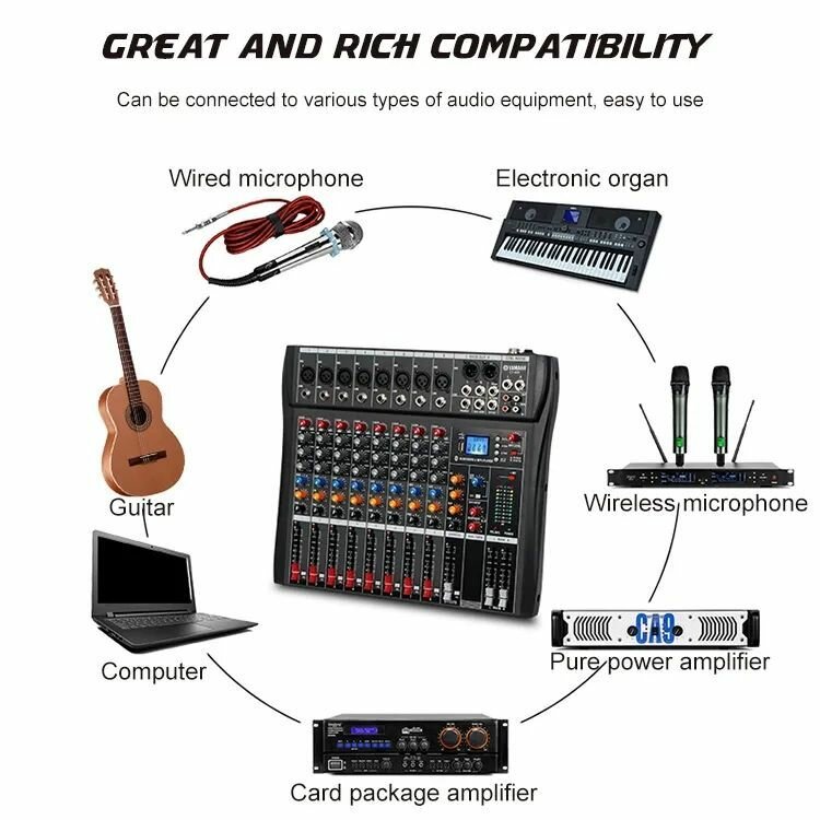 Вилка ЕС/Великобритании/США MIX800, 8-канальный мини-малошумящий звуковой микшер с адаптером питания