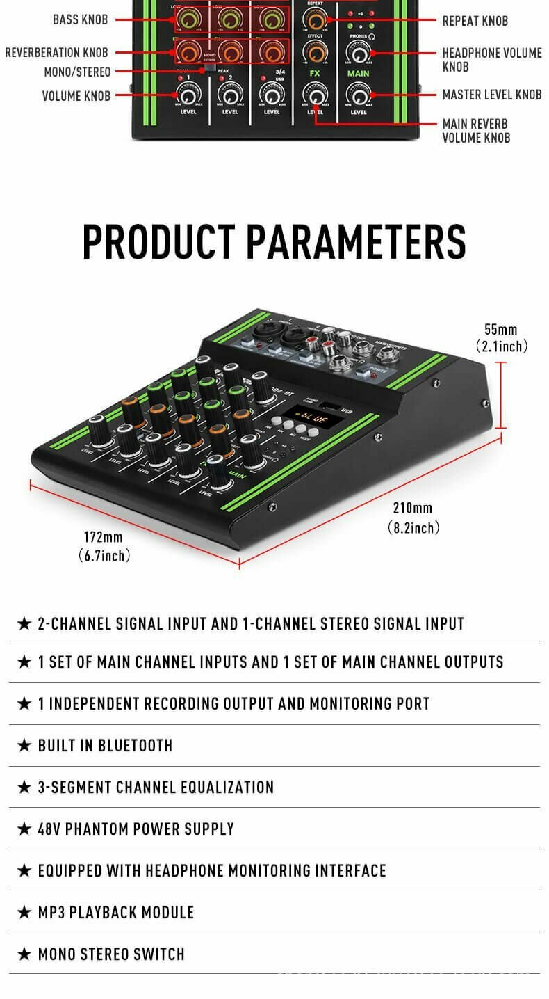 JIY Professional 4-канальный микшерный пульт Мини-USB-микшер со звуковой картой