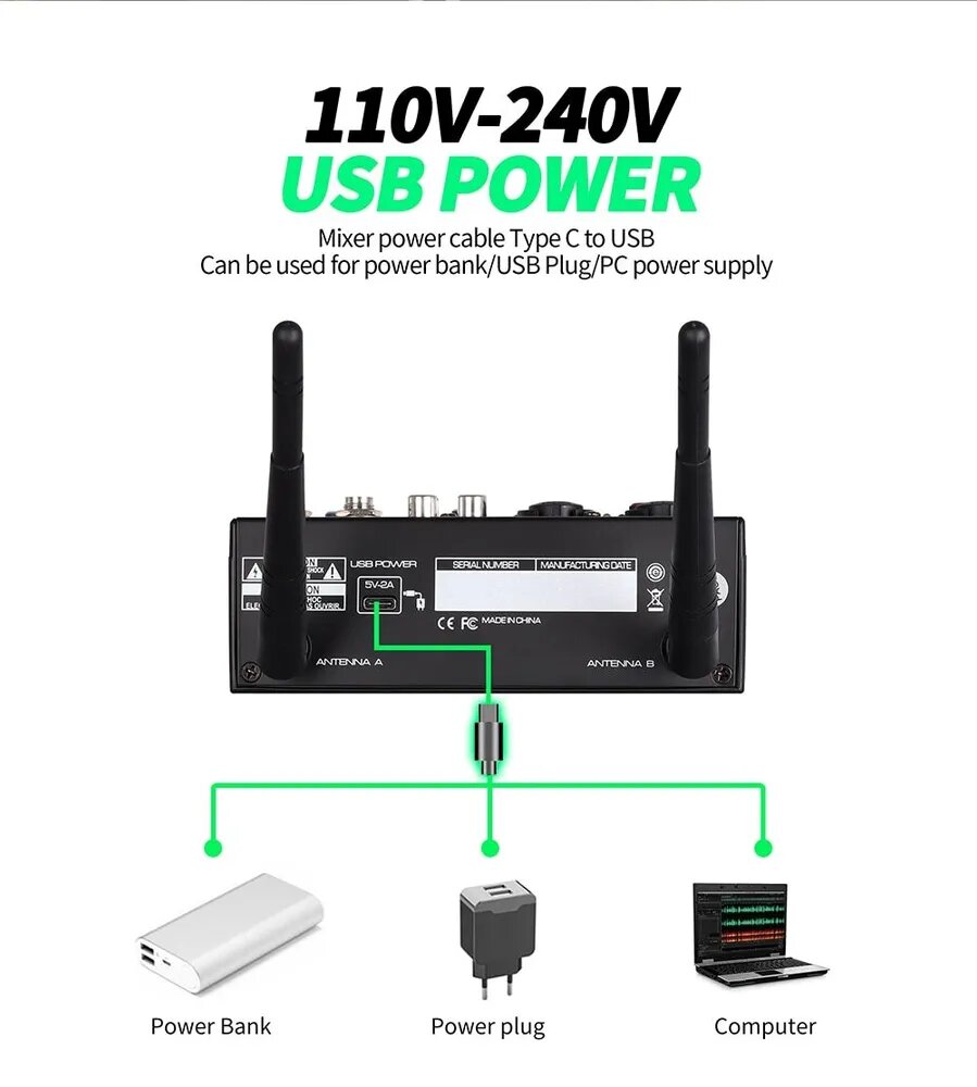 JIY Professional 4-канальный микшерный пульт Мини-USB-микшер со звуковой картой