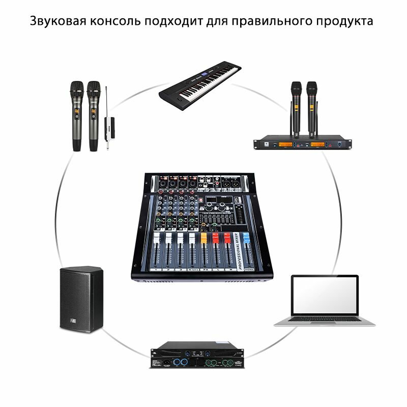 JIY Professional 4-канальный микшерный пульт Мини-USB-микшер со звуковой картой