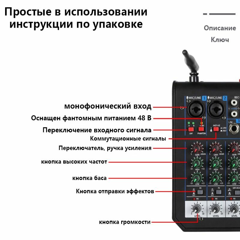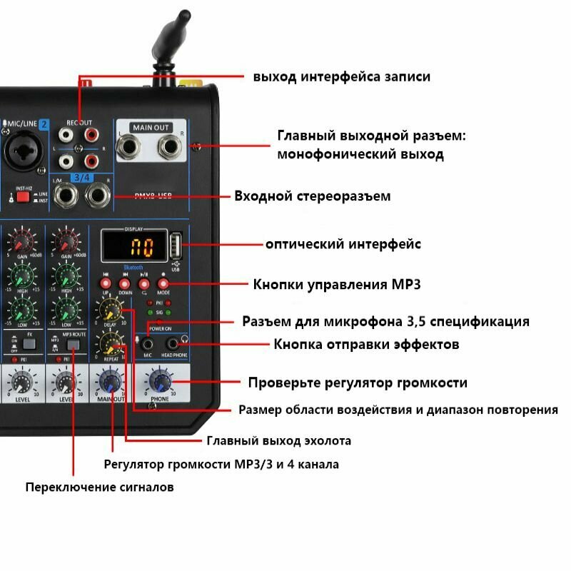 Bluetooth микшерный пульт с микрофоном Оснащен функциями Bluetooth и USB интересное: