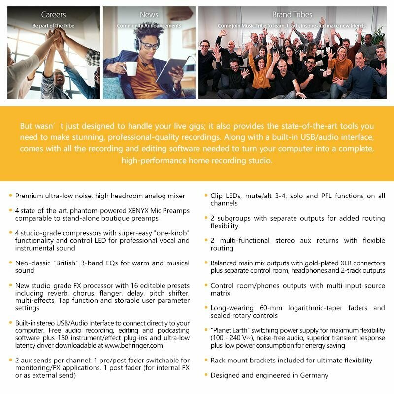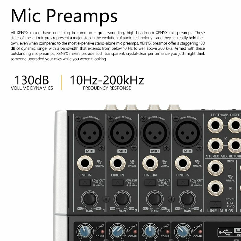 Behringer X1622USB 12-канальная, встроенная звуковая карта, с миксером эффекта реверберации, универсальный для мобильного телефона и компьютера интересное: