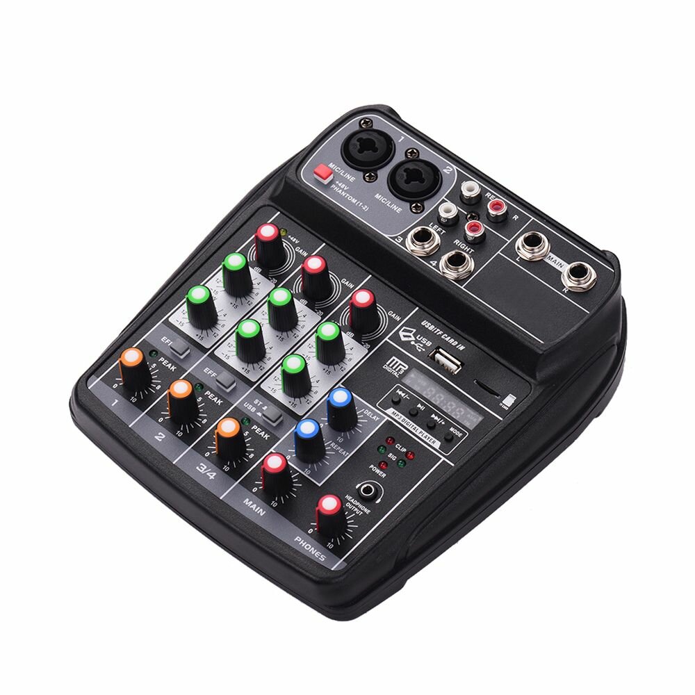 JIY Professional 4-канальный микшерный пульт Мини-USB-микшер со звуковой картой