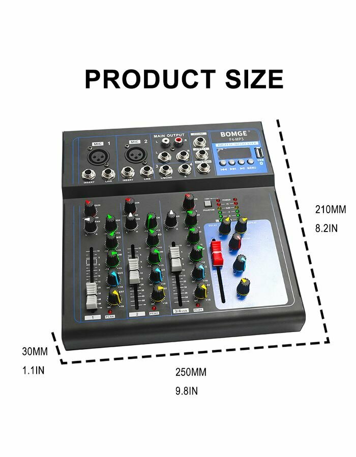 Купить 4-канальный микшер BOMGE F4 с цифровым MP3-входом, интерфейсом USB, совместимым с Bluetooth