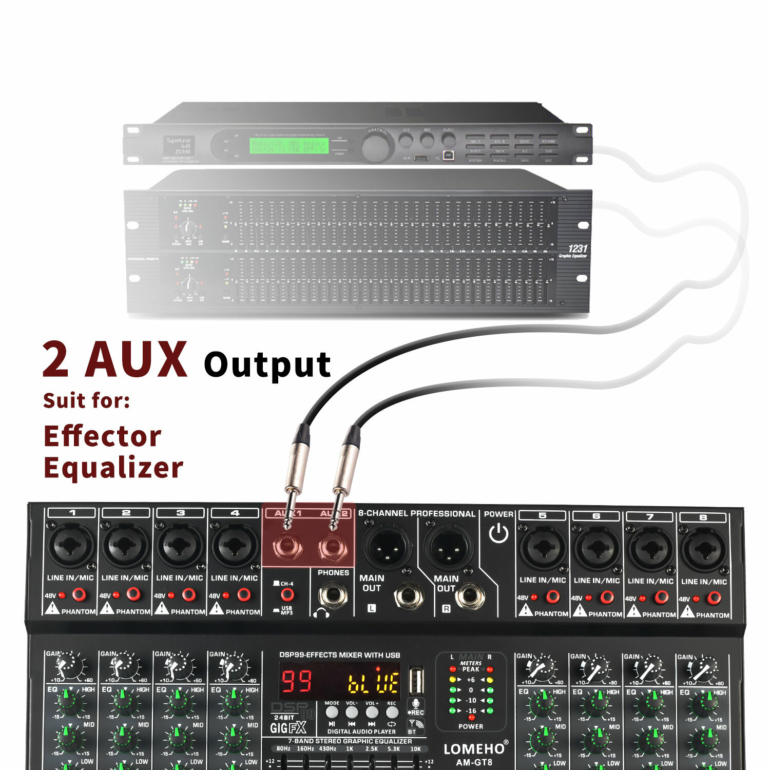 LOMEHO микшерный пульт 8-канальный аудиомикшер 99 эффектов 7-полосный эквалайзер 2 AUX 48 В USB Bluetooth DJ AM-GT8 интересное: