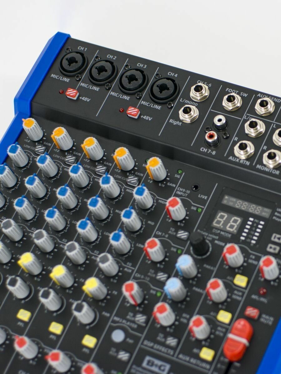 Ниже Вы можете прочитать отзывы на BG B428DSP Пульт микшерный, 4 моно, 3 стерео, 1AUX, DSP процессор 24bit/48KHz, USB MP3 плеер, BT B428DSP, ознакомится с подробными характеристиками, посмотреть интересные обзоры и фотографии на BG B428DSP Пульт микшерный, 4 моно, 3 стерео, 1AUX, DSP процессор 24bit/48KHz, USB MP3 плеер, BT B428DSP.
