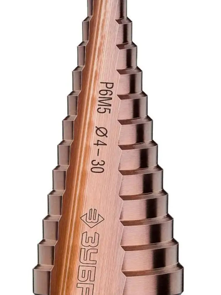 Сверло ступенчатое, 4-30мм, 14 ступеней, кобальтовое покрытие, ЗУБР кобальт, серия Профессионал